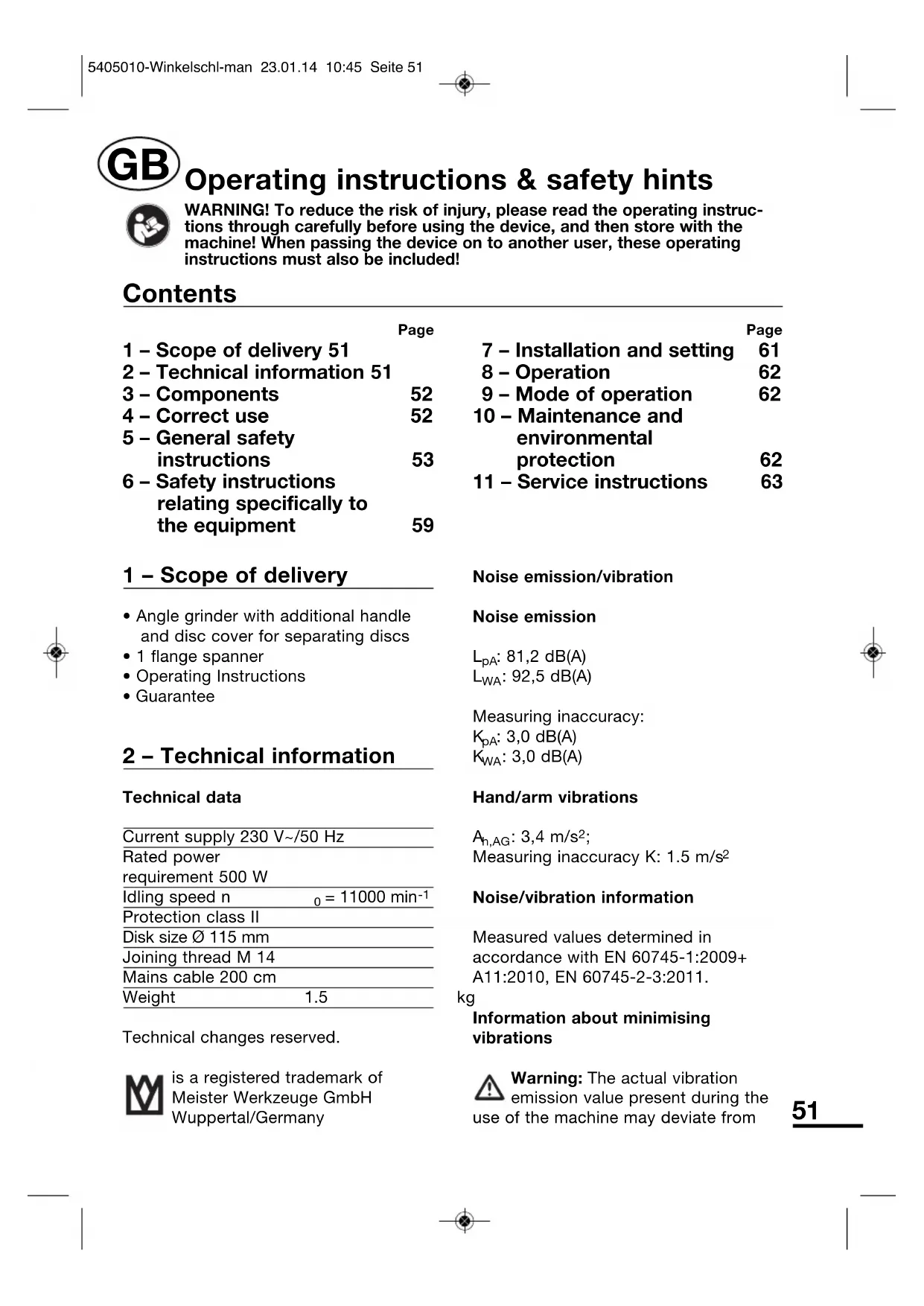 Download the instructions for your Grinder in PDF format for free! Find your manual BWS 500 C - Meister Craft and take your electronic device back in hand. On this page are published all the documents necessary for the use of your device. BWS 500 C by Meister Craft.