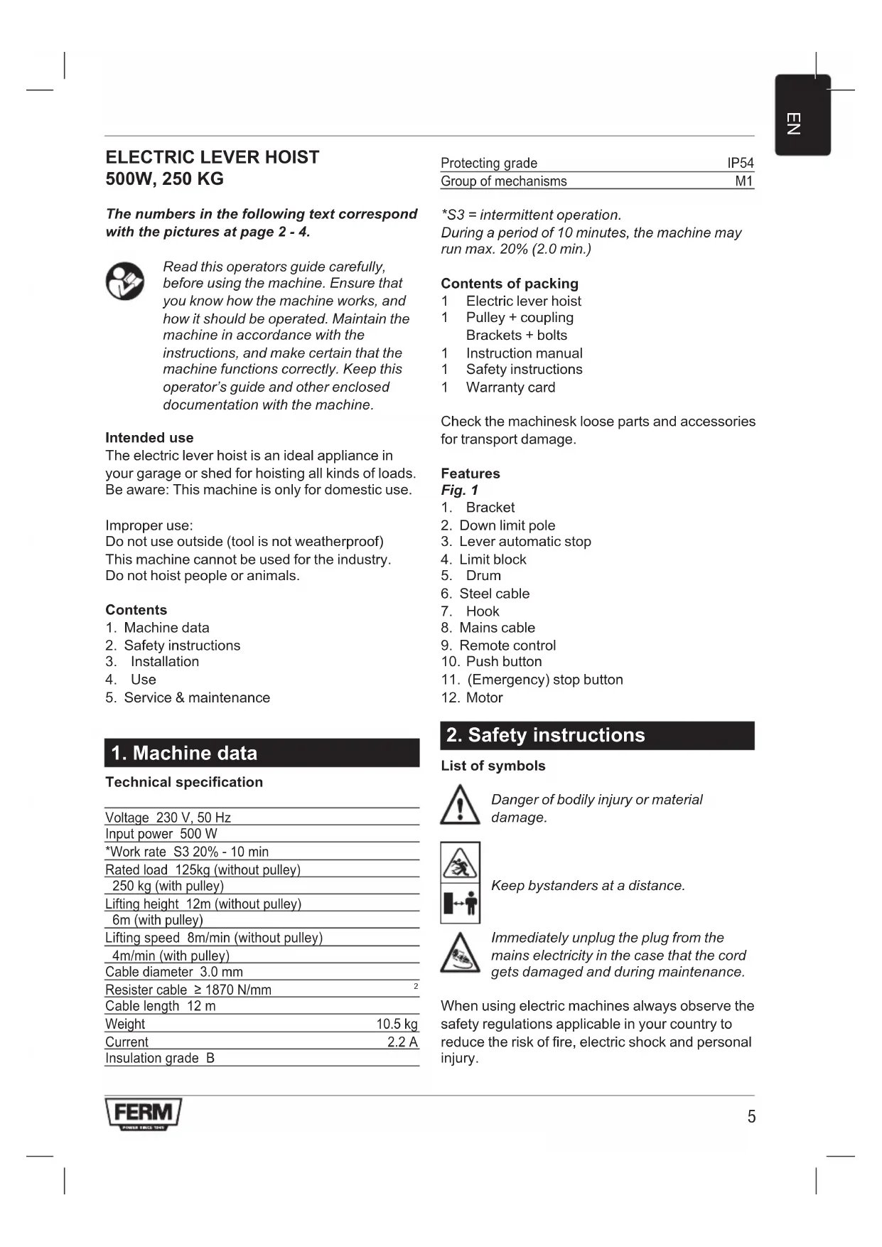 Download the instructions for your Electric winch in PDF format for free! Find your manual LHM1011 - Ferm and take your electronic device back in hand. On this page are published all the documents necessary for the use of your device. LHM1011 by Ferm.