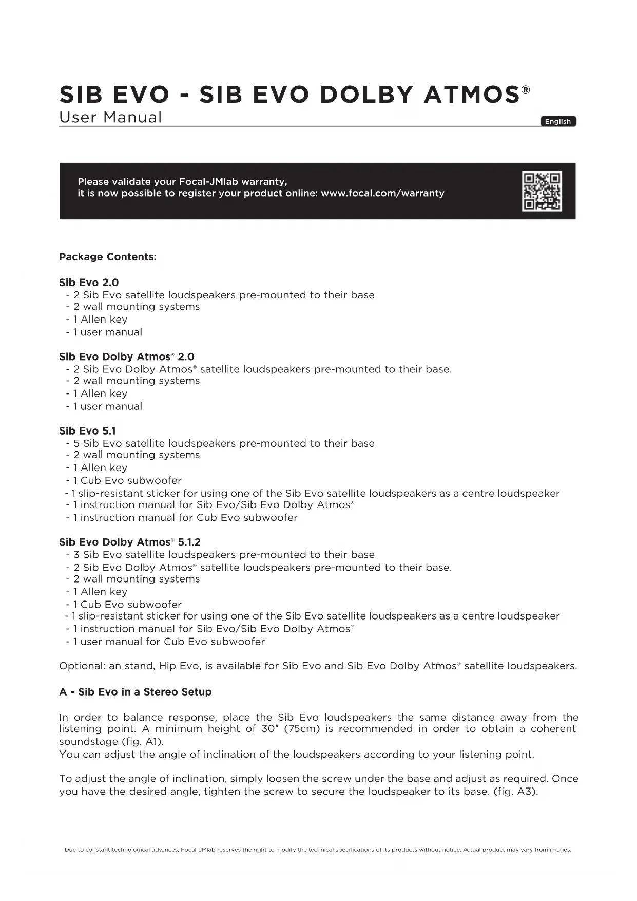 Download the instructions for your Speaker in PDF format for free! Find your manual Sib Evo - FOCAL and take your electronic device back in hand. On this page are published all the documents necessary for the use of your device. Sib Evo by FOCAL.