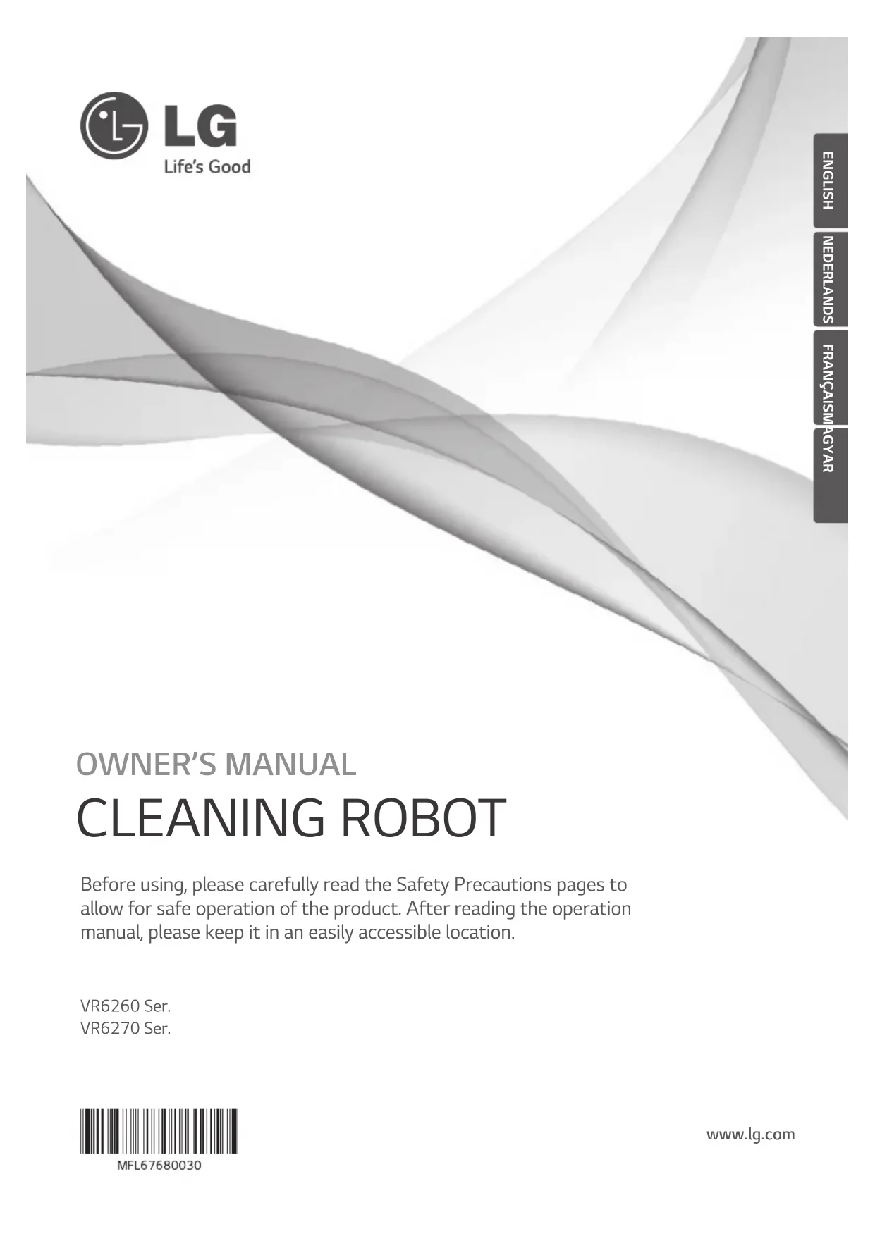CLEANING ROBOT VR6260 Ser. VR6270 Ser. Before using, please carefully read the Safety Precautions pages to allow for safe operation of the product. After reading the operation manual, please keep it in an easily accessible location. www.lg.com ENGLISH NEDERLANDS