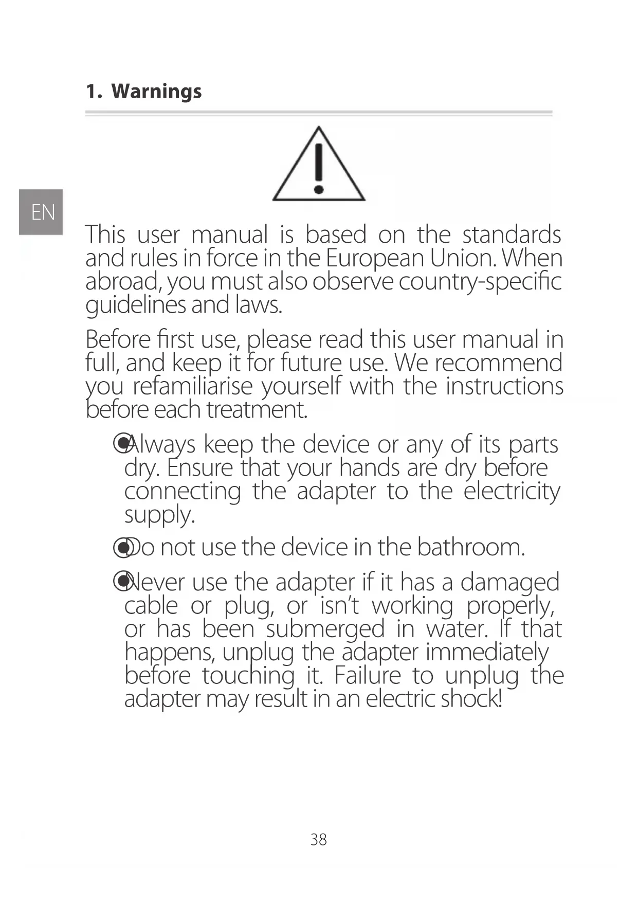 Before first use, please read this user manual in full, and keep it for future use. We recommend you refamiliarise yourself with the instructions before each treatment.