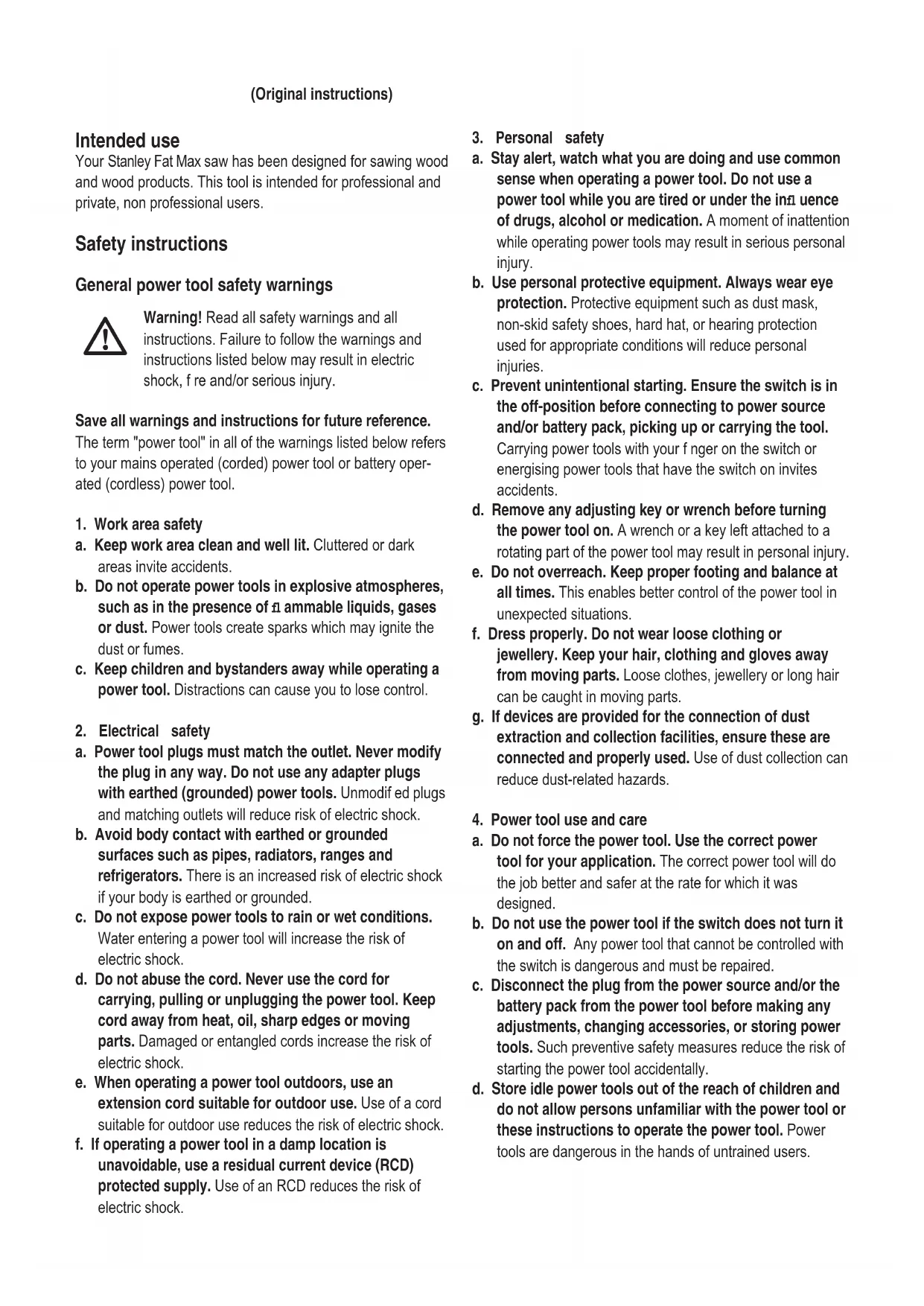 Your Stanley Fat Max saw has been designed for sawing wood and wood products. This tool is intended for professional and private, non professional users.