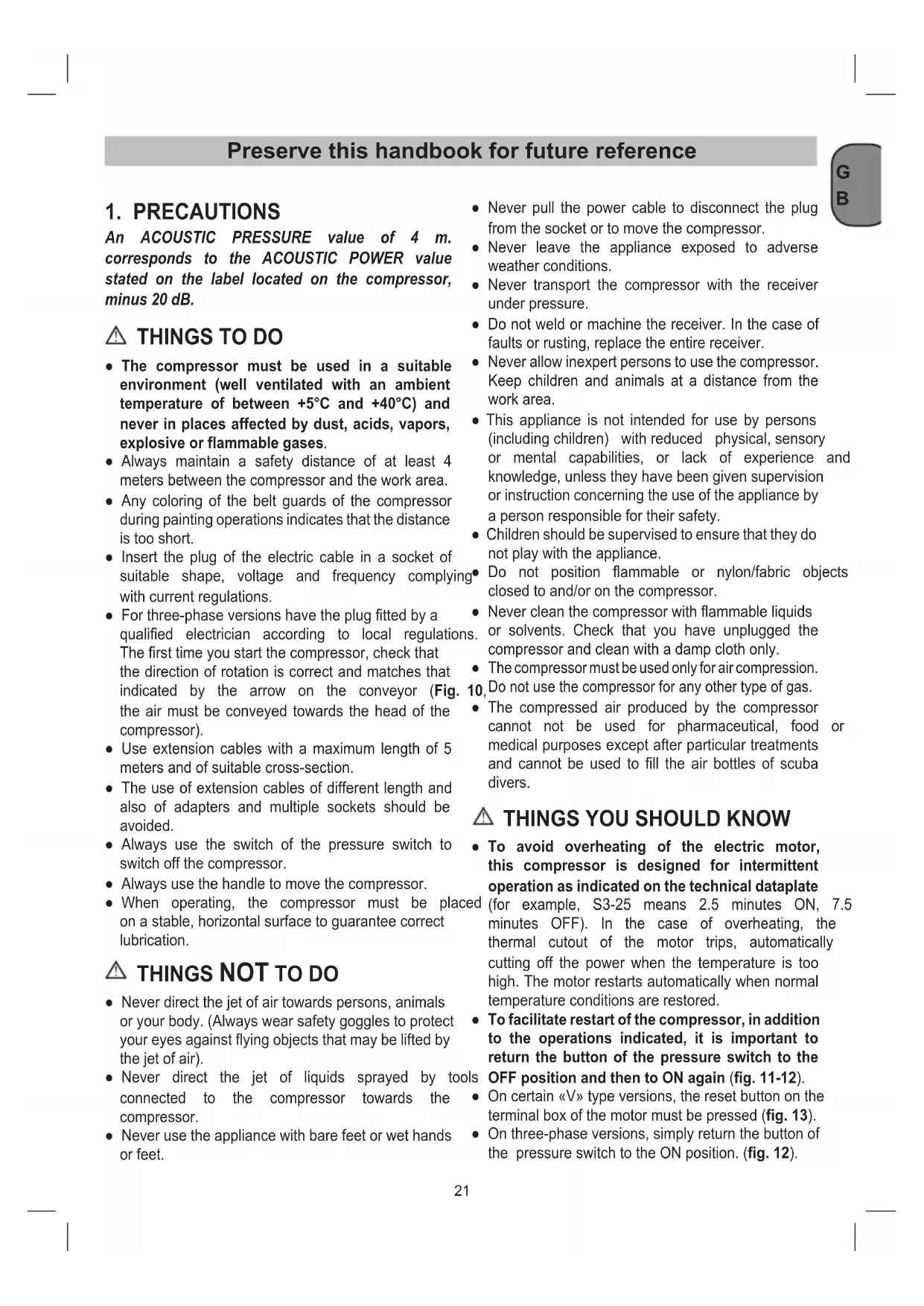 Compresorul se pomeste prin tragerea afara a butonlui rosu (ref. 8).