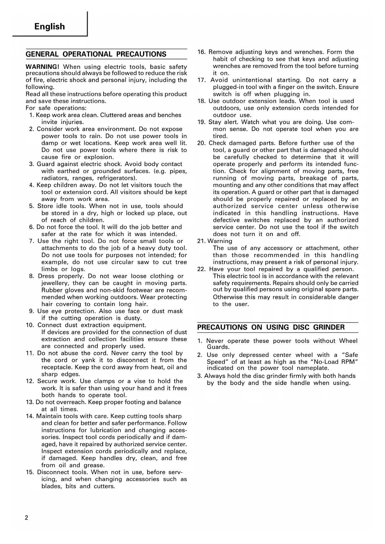 PRECAUTIONS ON USING DISC GRINDER