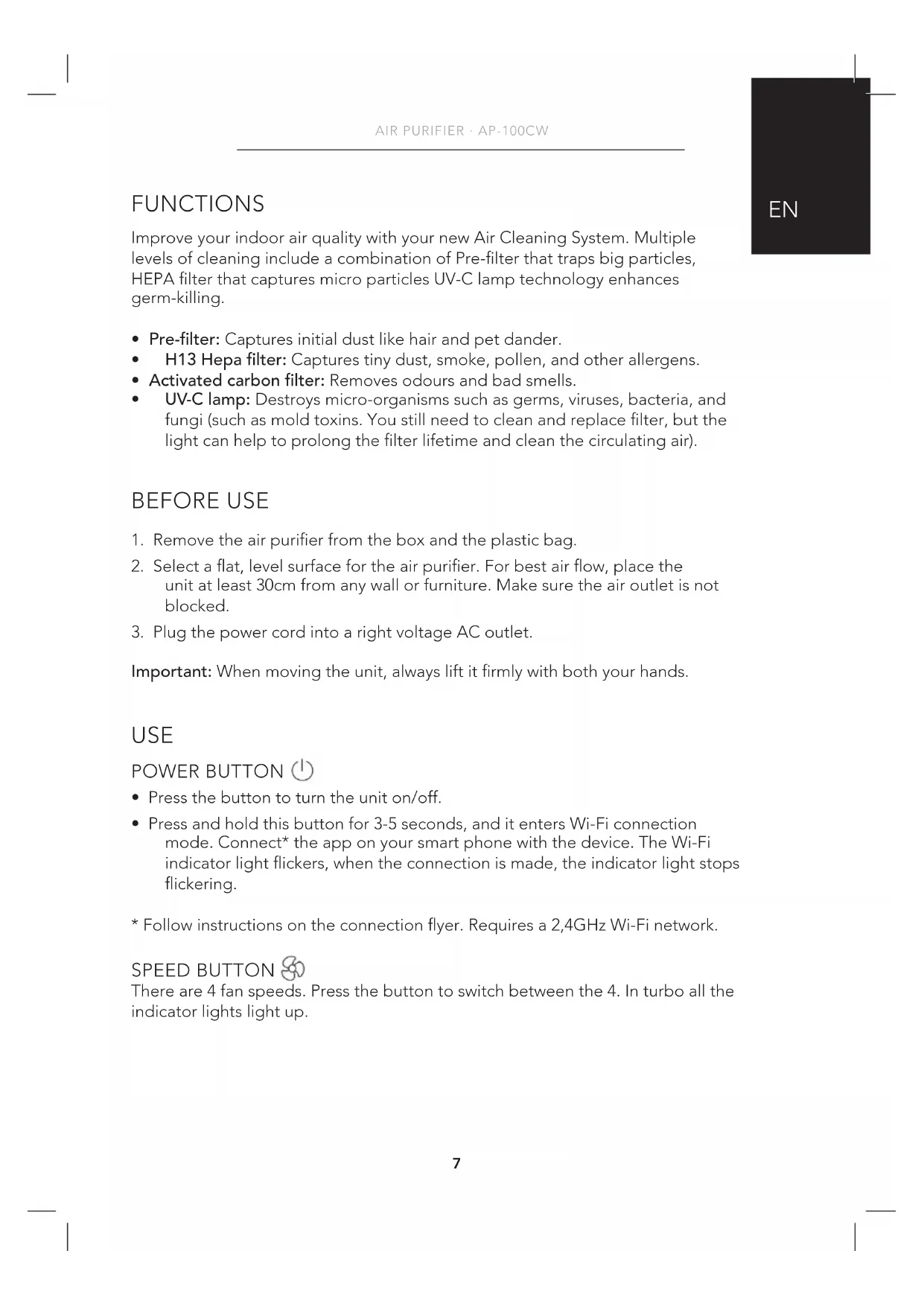 Fresh AP100CW - Air purifier WILFA - Free user manual and instructions
