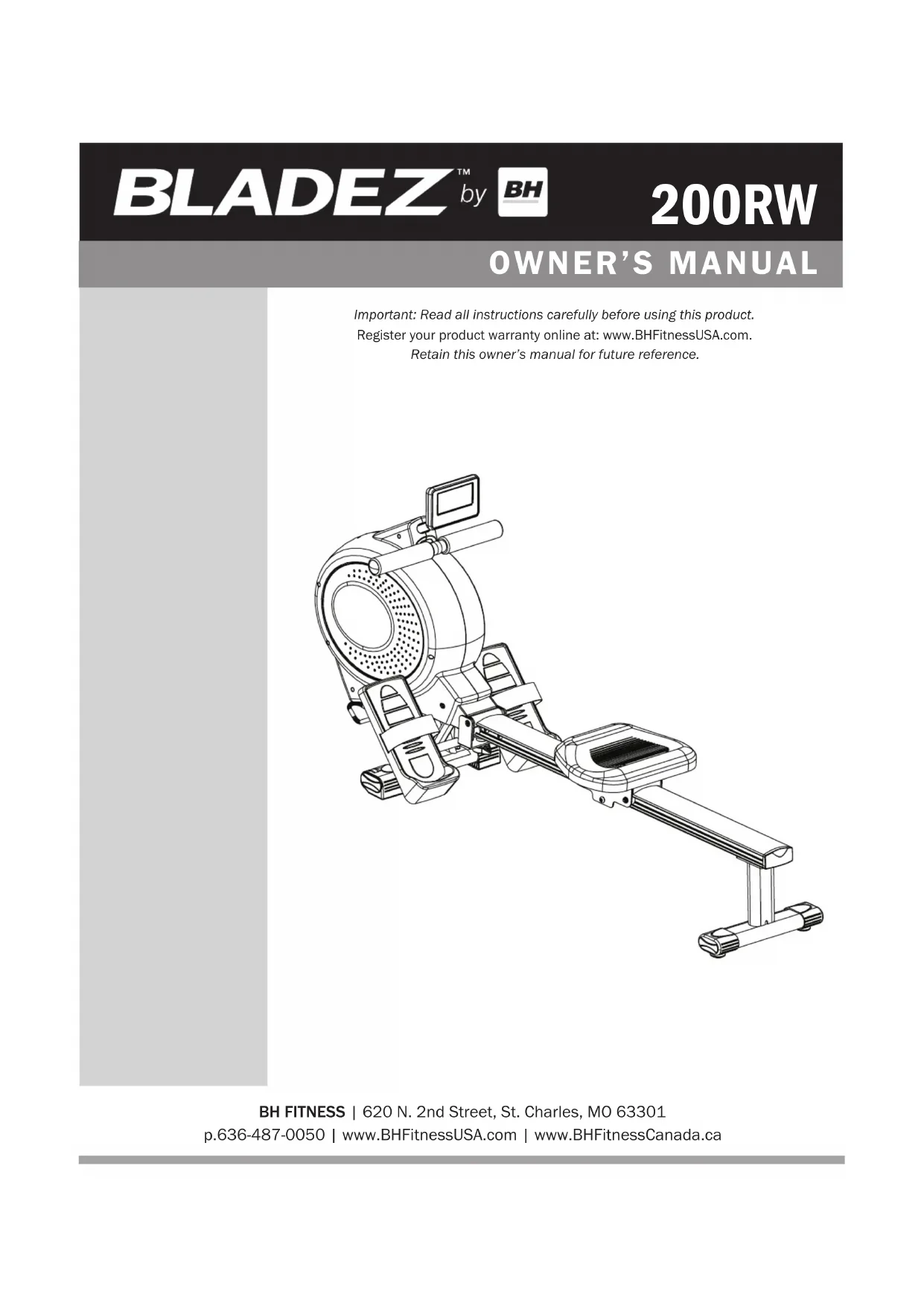 200RW - Rowing Machine Bladez - Free user manual and instructions