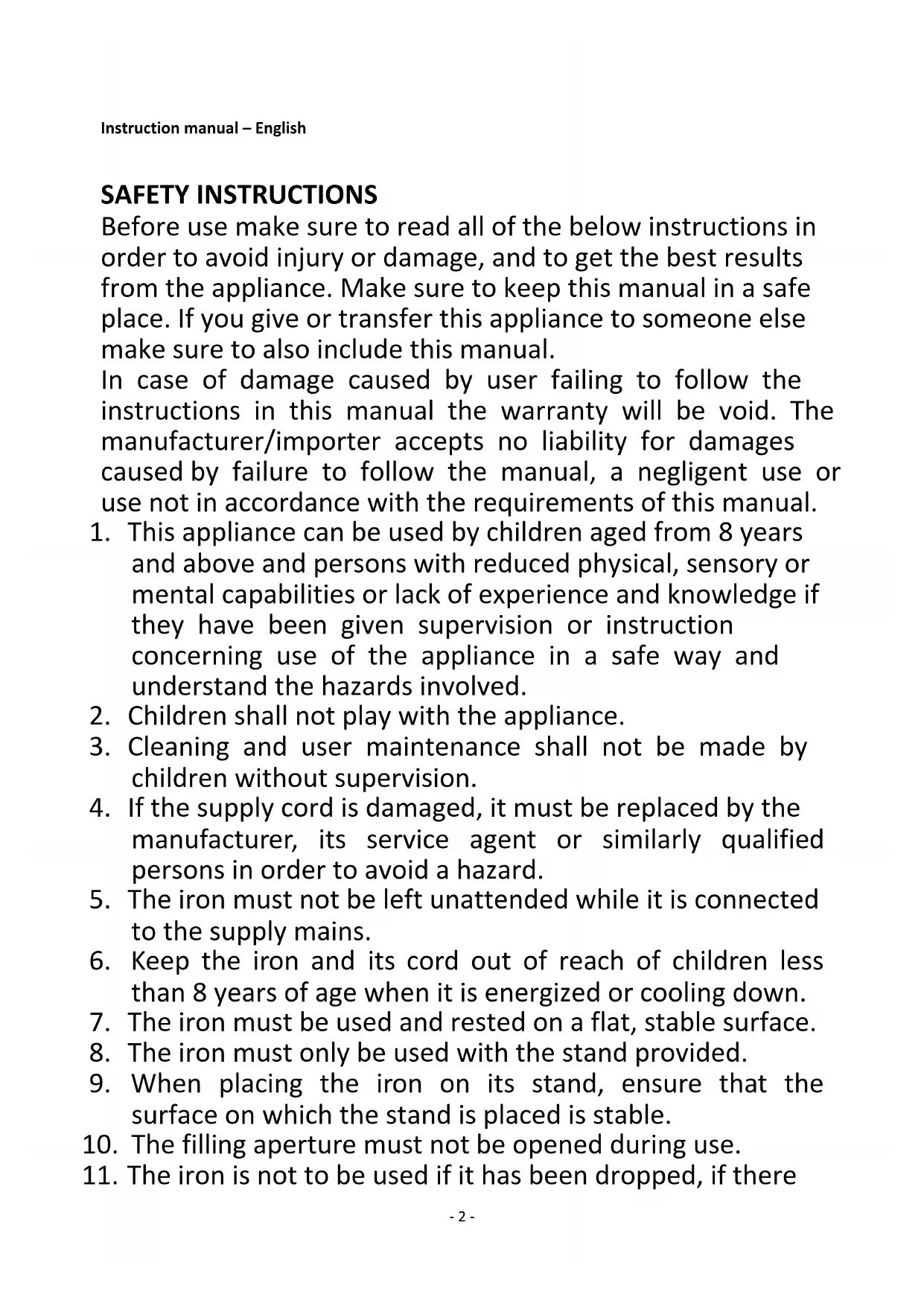 11. The iron is not to be used if it has been dropped, if there- 3 -