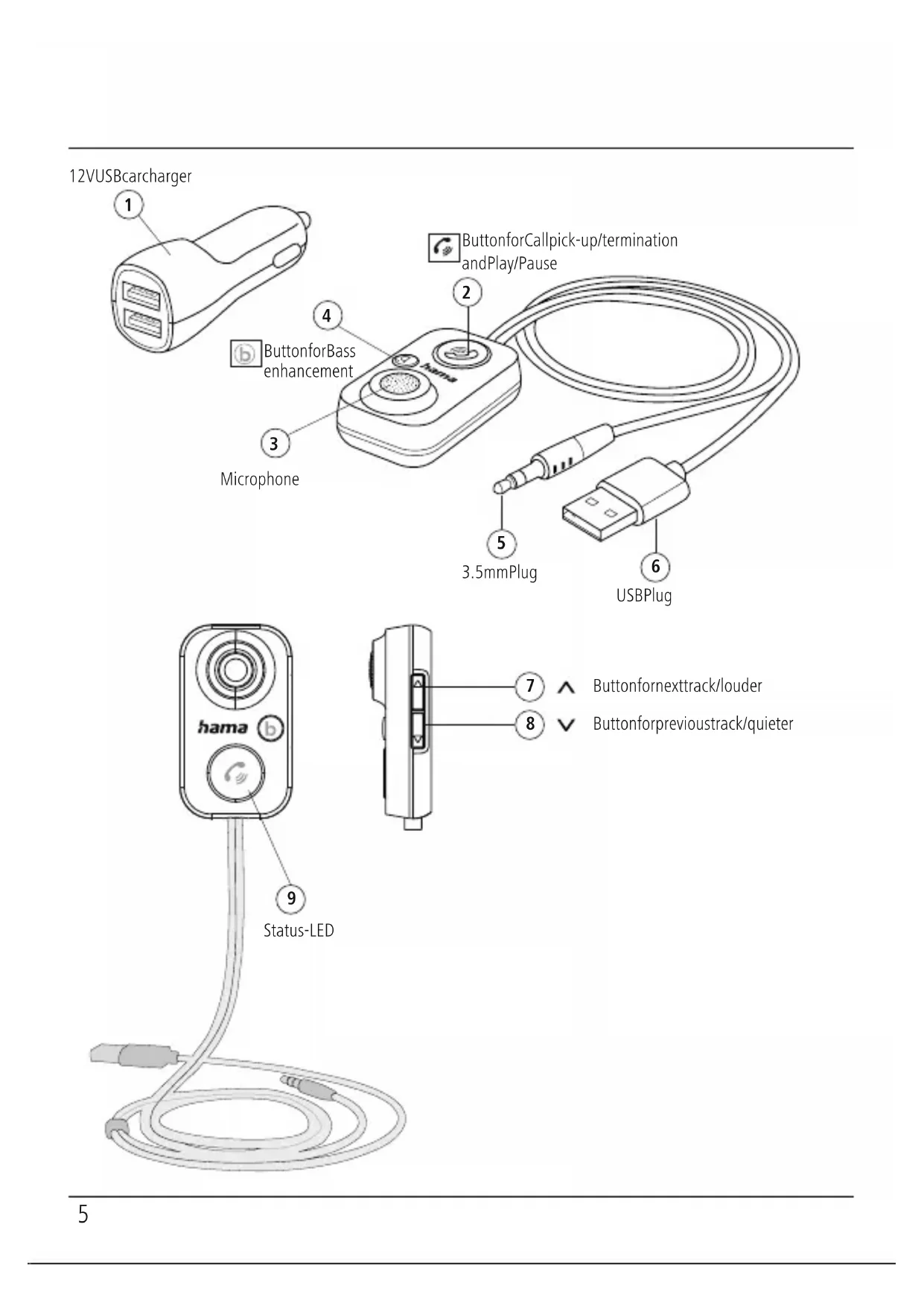 receiver, simply plug the USB plug (6) back into the USB car charger (1).