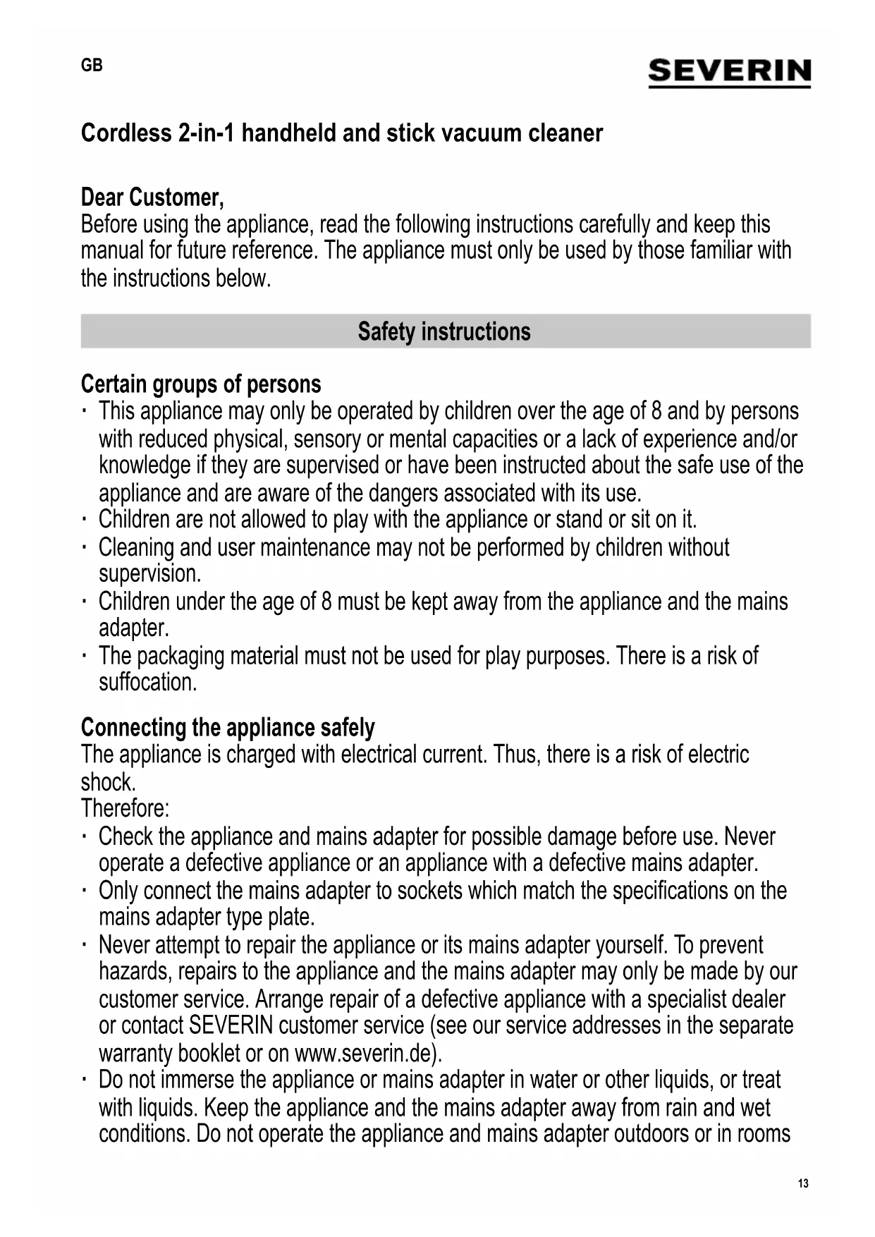 HV 7173 - Handheld vacuum SEVERIN - Free user manual and instructions