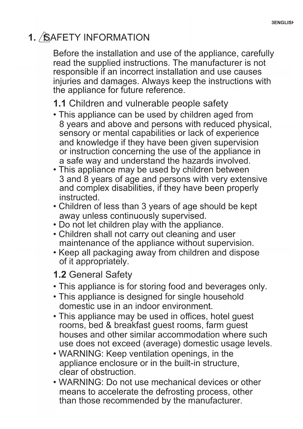 - This appliance may be used by children between 3 and 8 years of age and persons with very extensive and complex disabilities, if they have been properly instructed.