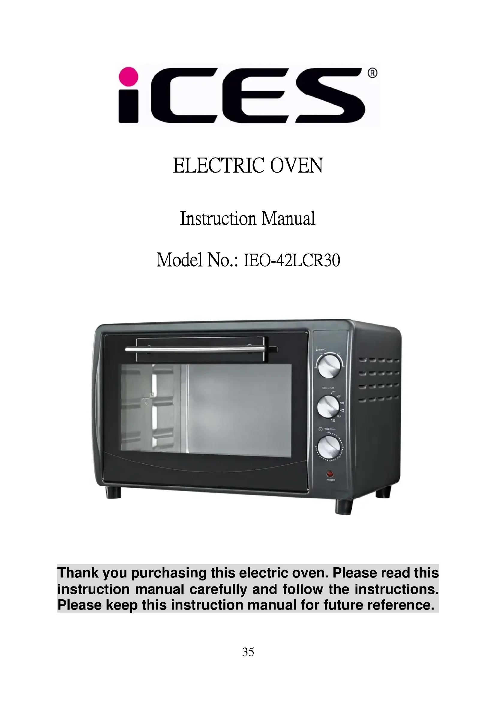 Thank you purchasing this electric oven. Please read this instruction manual carefully and follow the instructions. Please keep this instruction manual for future reference.36