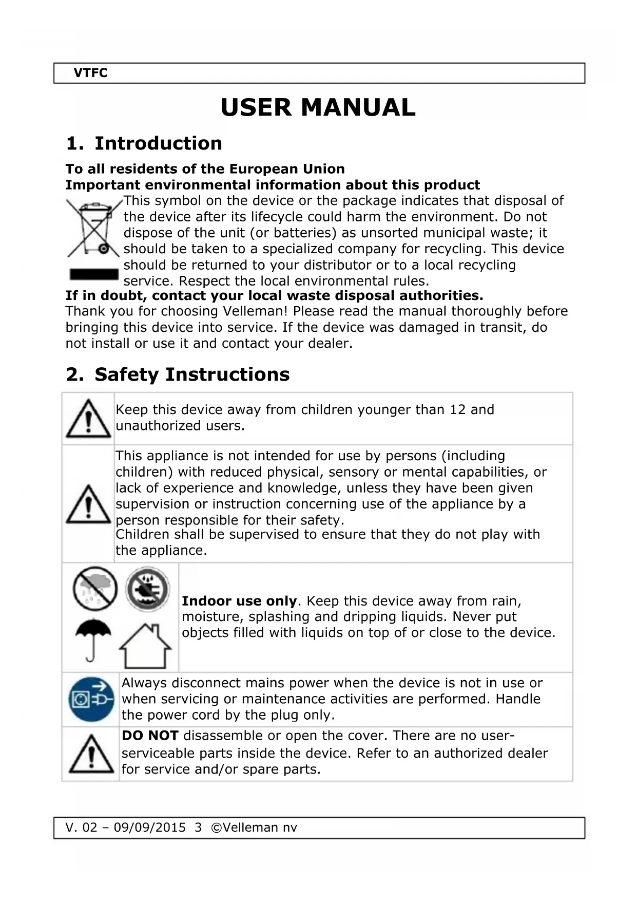 USER MANUAL VTFC VELLEMAN
