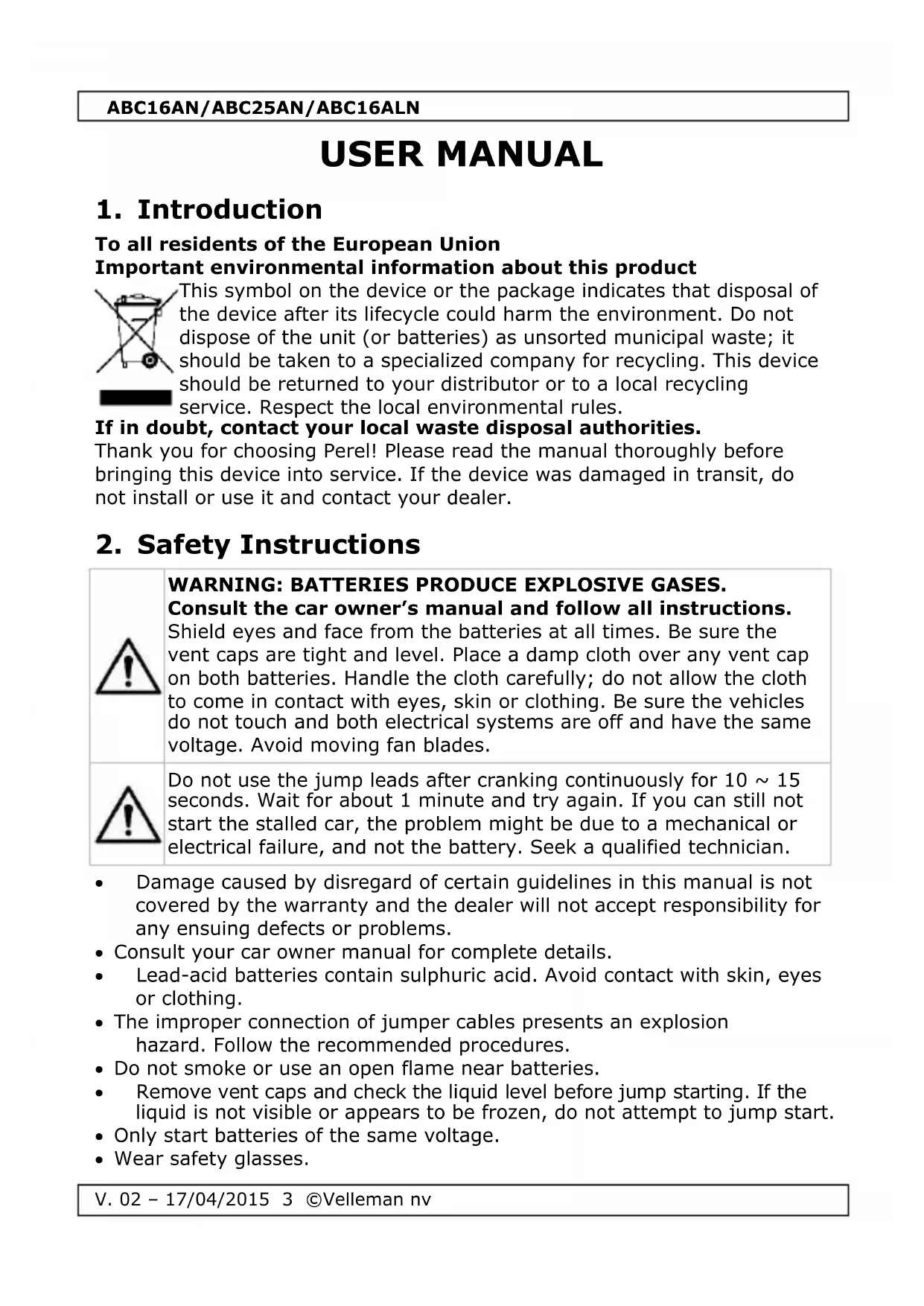 ABC16ALN - Jumper cables Perel - Free user manual and instructions
