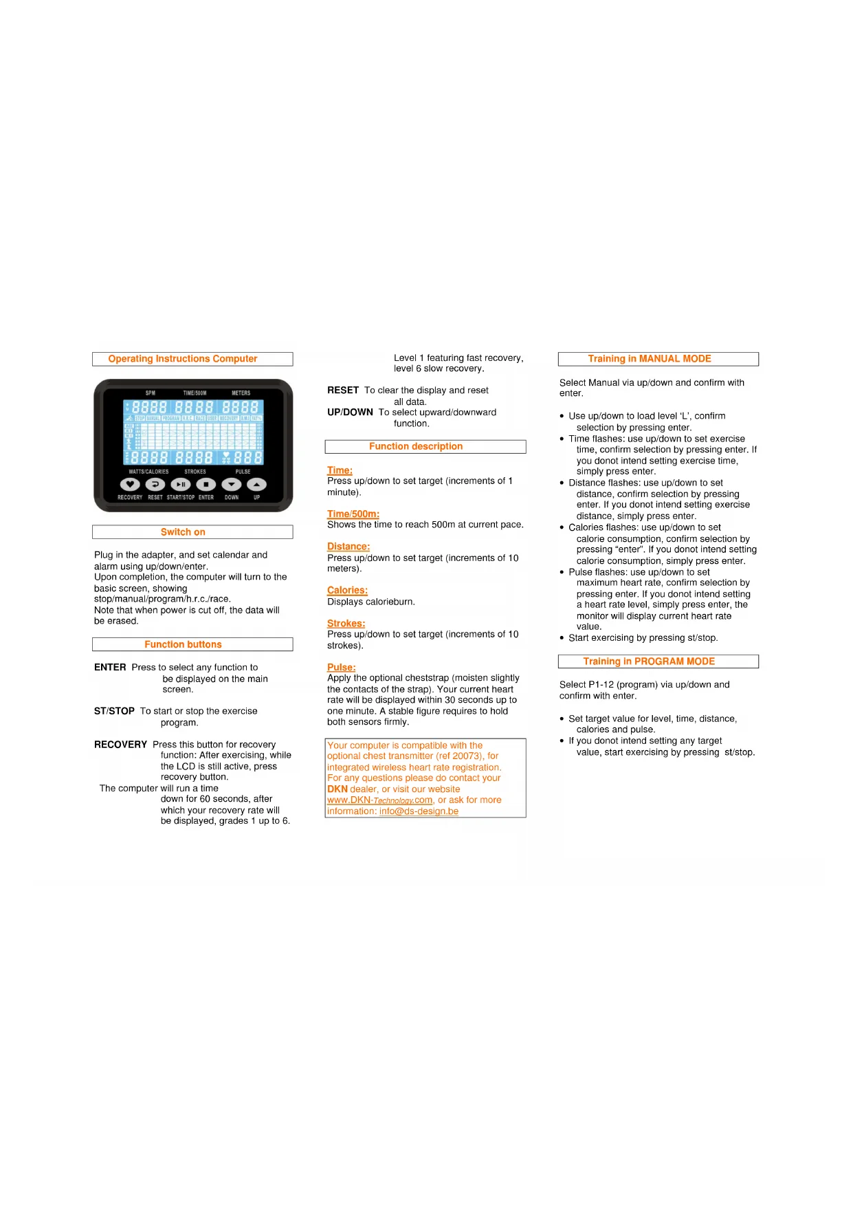 Before you start training on your DKN exerciser, please read the instructions carefully. Be sure to keep the Instructions for Information, in case of repair and for spare part delivery.