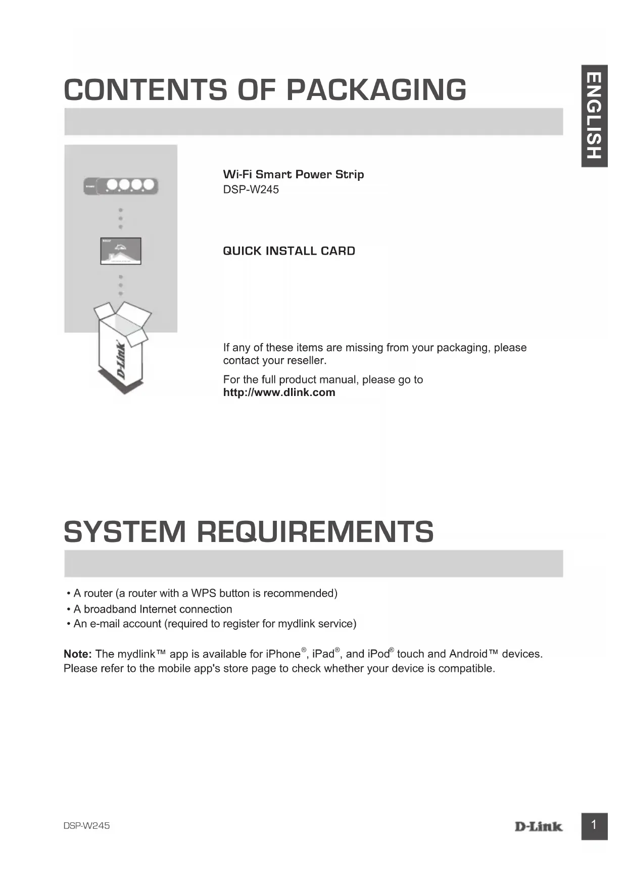 Download the instructions for your Smart Home in PDF format for free! Find your manual DSPW245 - D-LINK and take your electronic device back in hand. On this page are published all the documents necessary for the use of your device. DSPW245 by D-LINK.