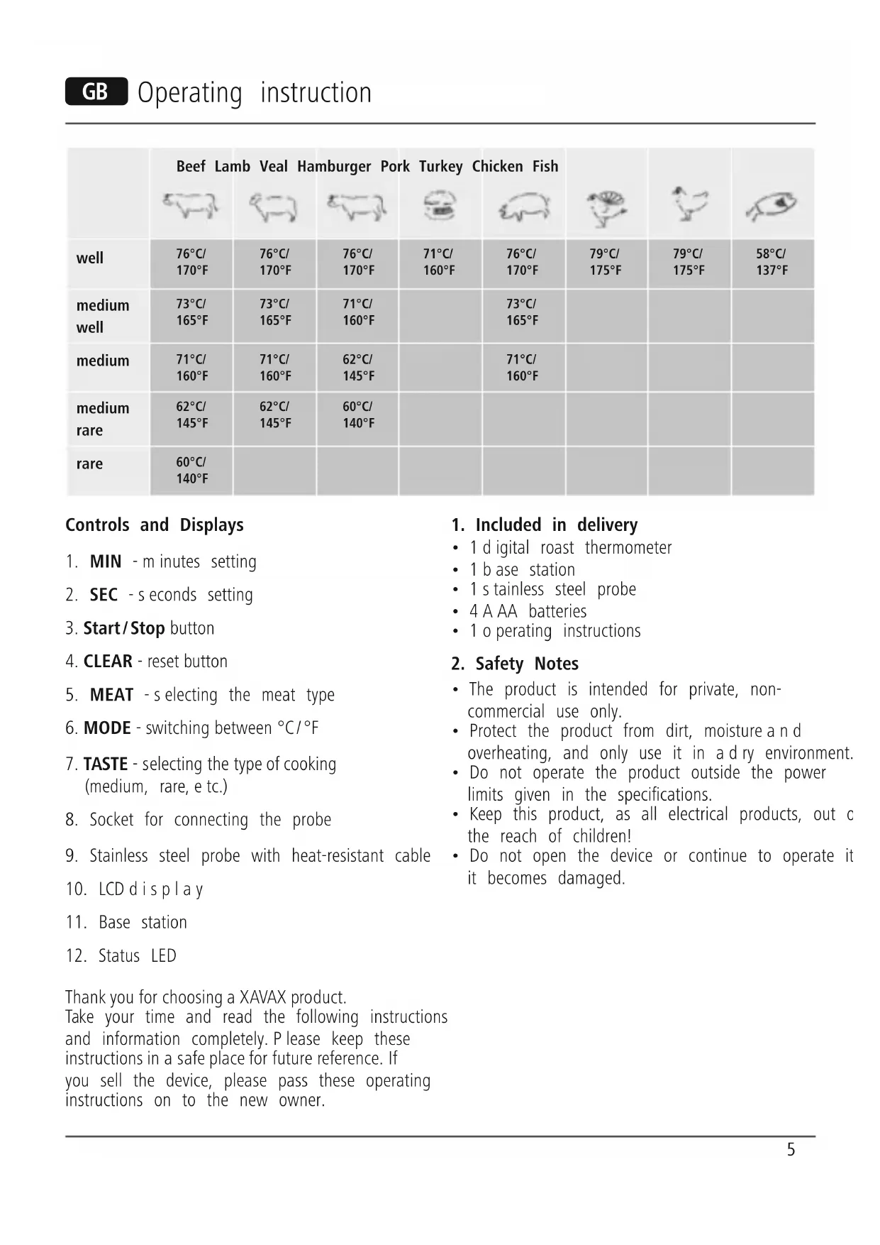00111382 - Food thermometer Xavax - Free user manual and instructions