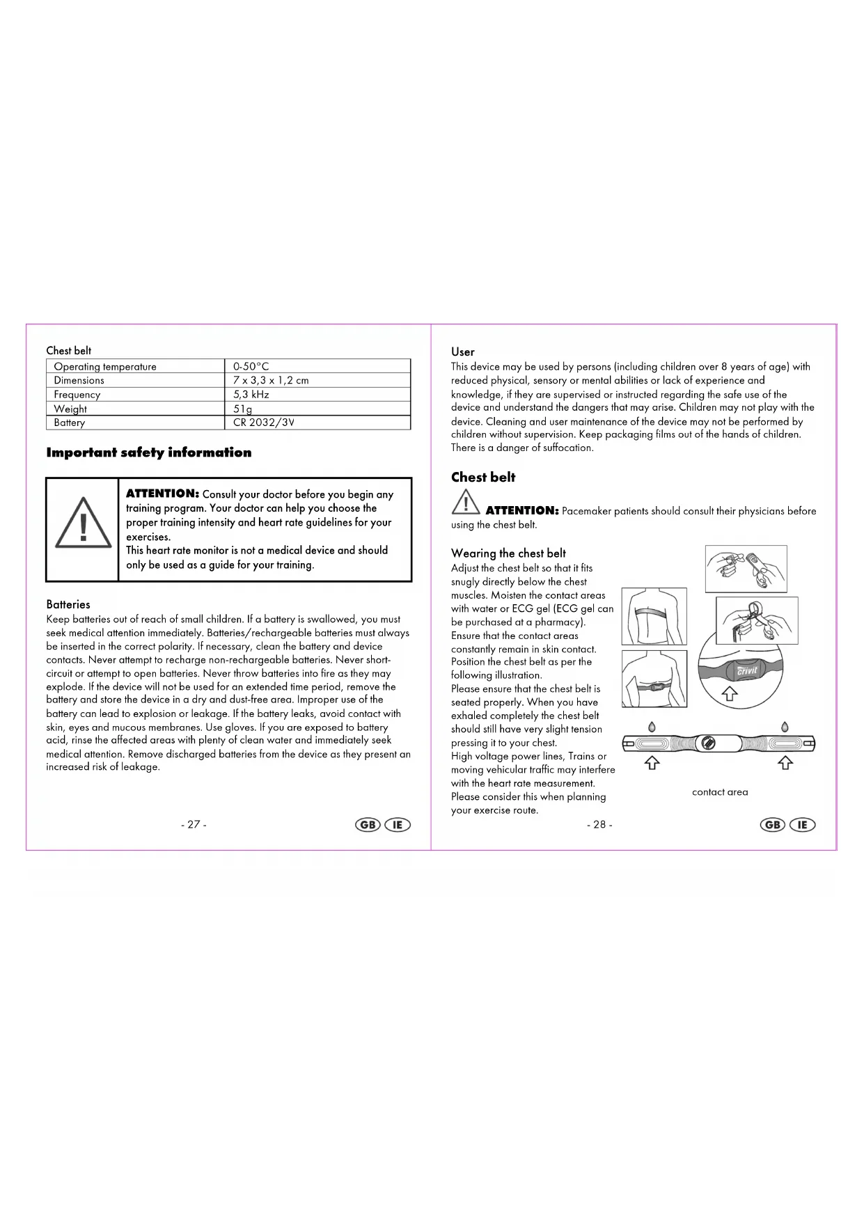 CR 2032/3V- 27 - Chest belt Operating temperature