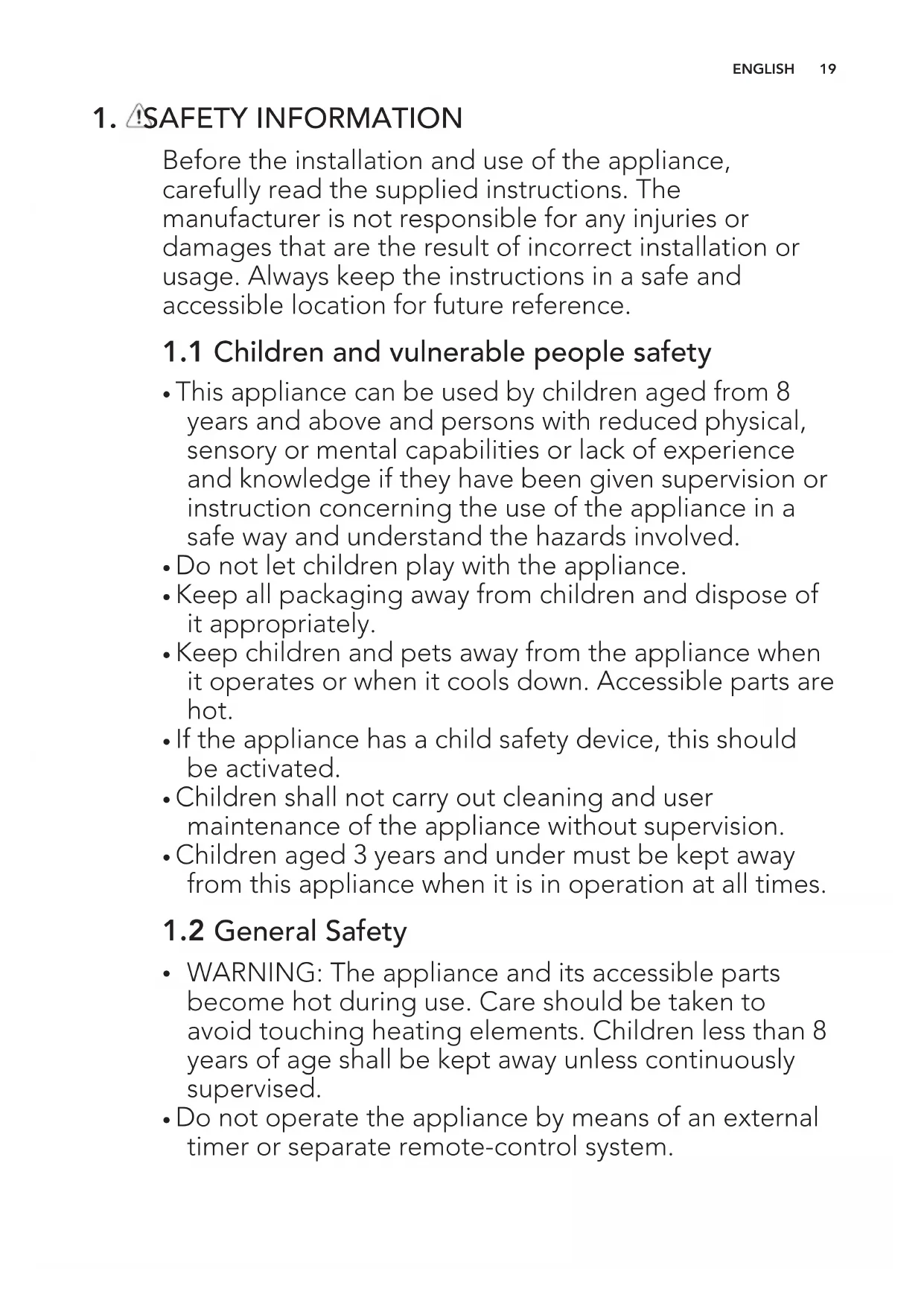 - This appliance can be used by children aged from 8 years and above and persons with reduced physical, sensory or mental capabilities or lack of experience and knowledge if they have been given supervision or instruction concerning the use of the appliance in a safe way and understand the hazards involved.