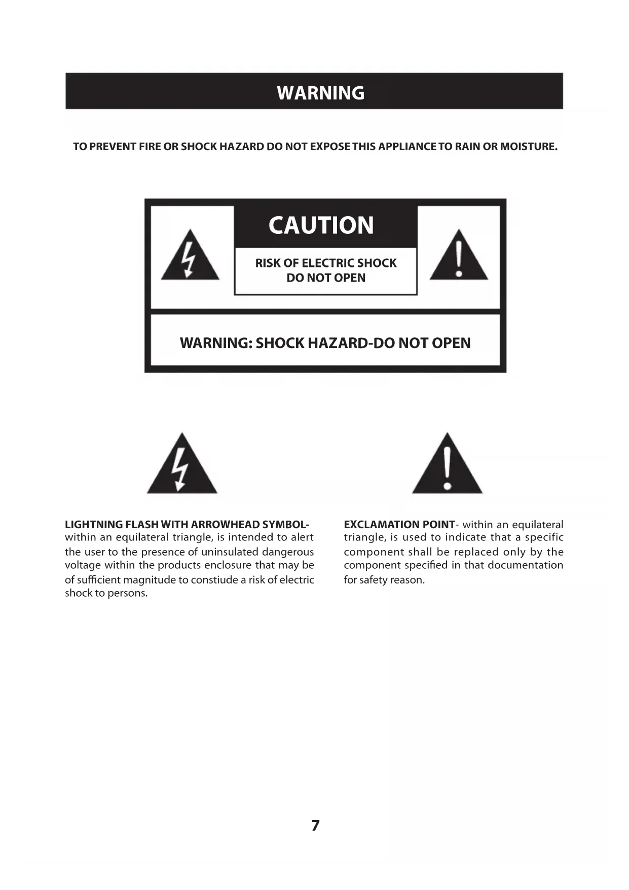 within an equilateral triangle, is intended to alert the user to the presence of uninsulated dangerous voltage within the products enclosure that may be of sufficient magnitude to consiude a risk of electric shock to persons.