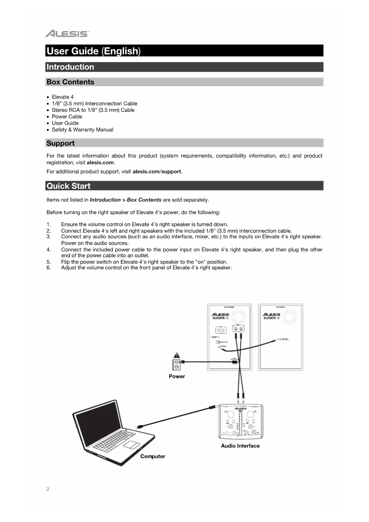 Download the instructions for your Speaker in PDF format for free! Find your manual Elevate 4 - ALESIS and take your electronic device back in hand. On this page are published all the documents necessary for the use of your device. Elevate 4 by ALESIS.