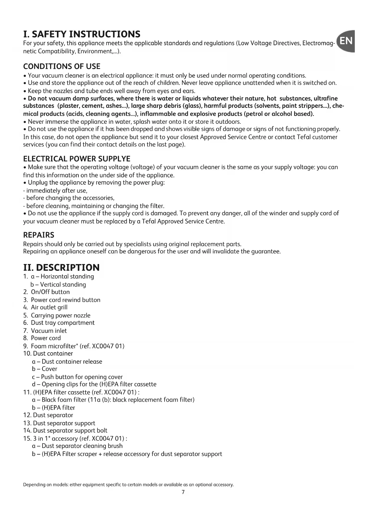 - if you experience difficulties obtaining the accessories and filters for this vacuum cleaner, contact Tefal customer serv- ices (you can find their contact details on the last page).