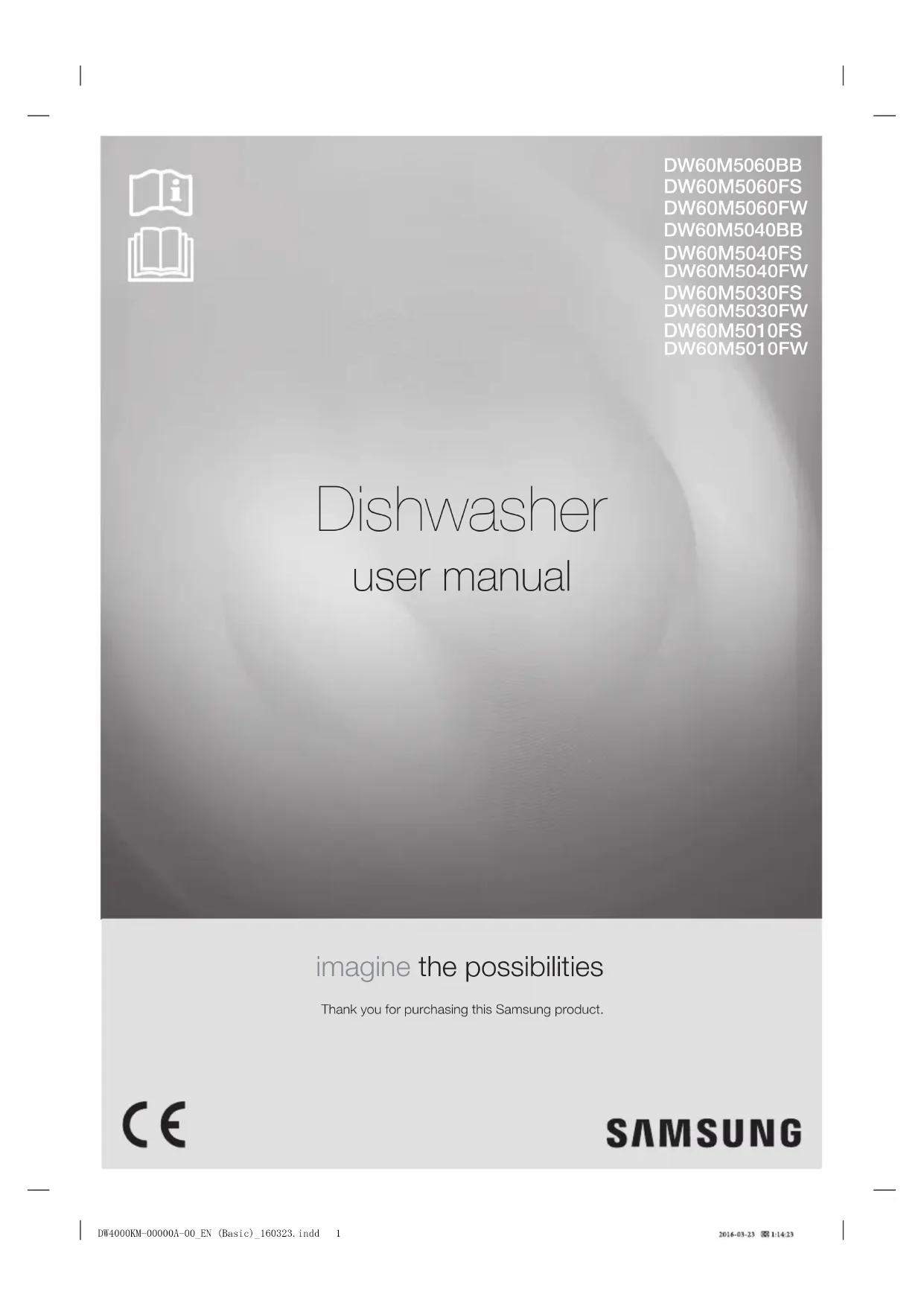 DW60M5060BB DW60M5060FS DW60M5060FW DW60M5030FS DW60M5010FS DW60M5040FS DW60M5040FWDW60M5030FWDW60M5010FWDW60M5040BB Dishwasher user manual imagine the possibilities Thank you for purchasing this Samsung product.DW4000KM-00000A-00_EN (Basic)_160323.indd 12_ Contents Contents SAFETY INFORMATION