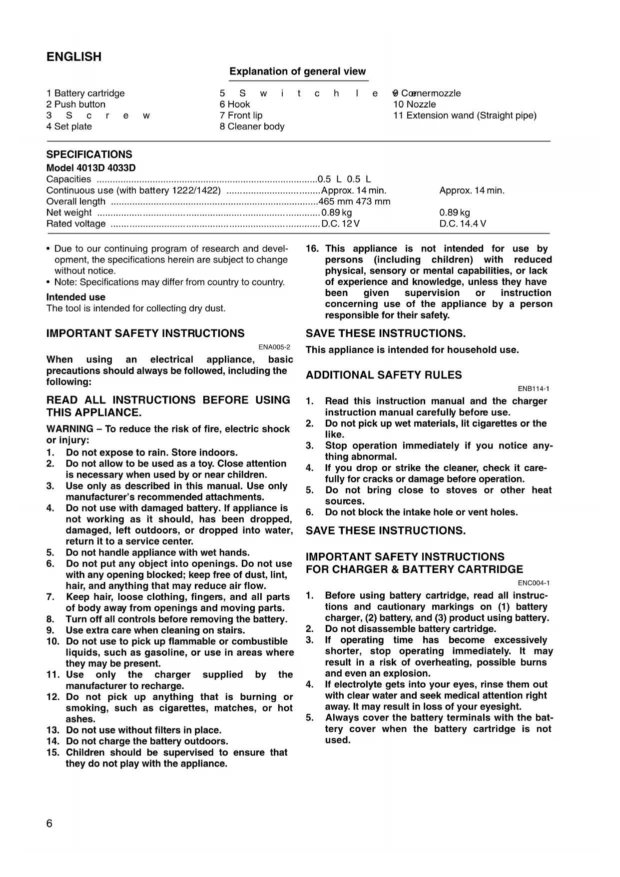 IMPORTANT SAFETY INSTRUCTIONS FOR CHARGER & BATTERY CARTRIDGE