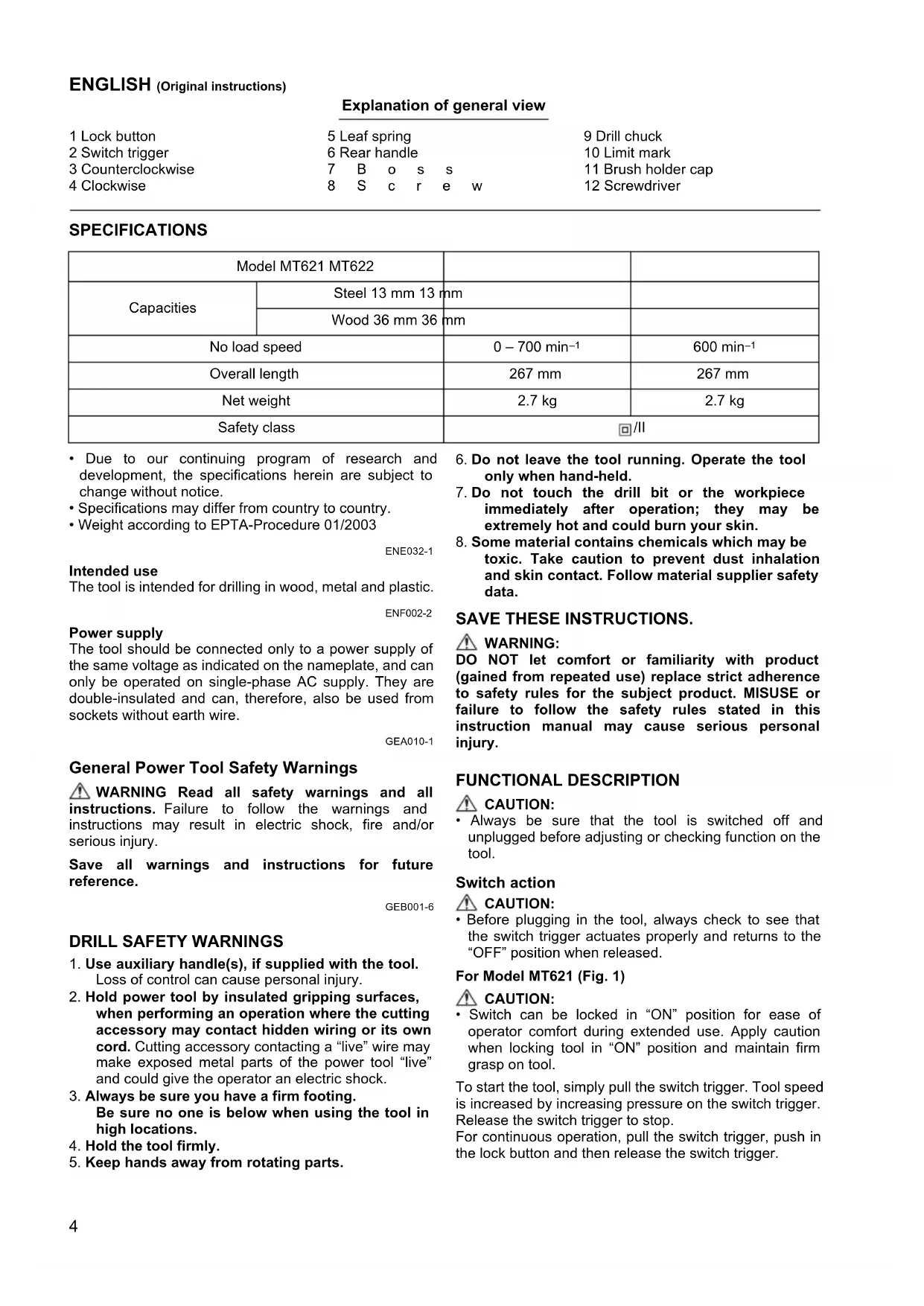 USER MANUAL MT621 Maktec