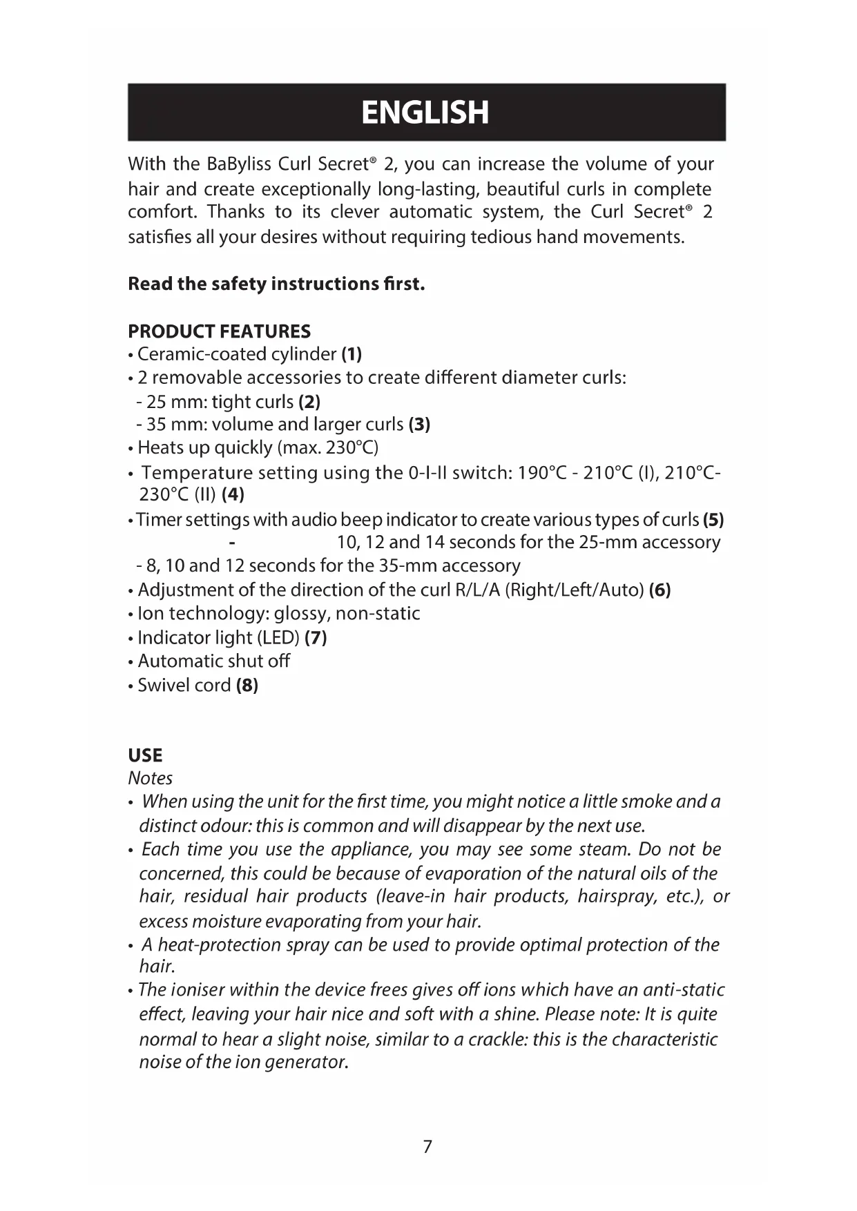 USER MANUAL Curl Secret C1300E BABYLISS