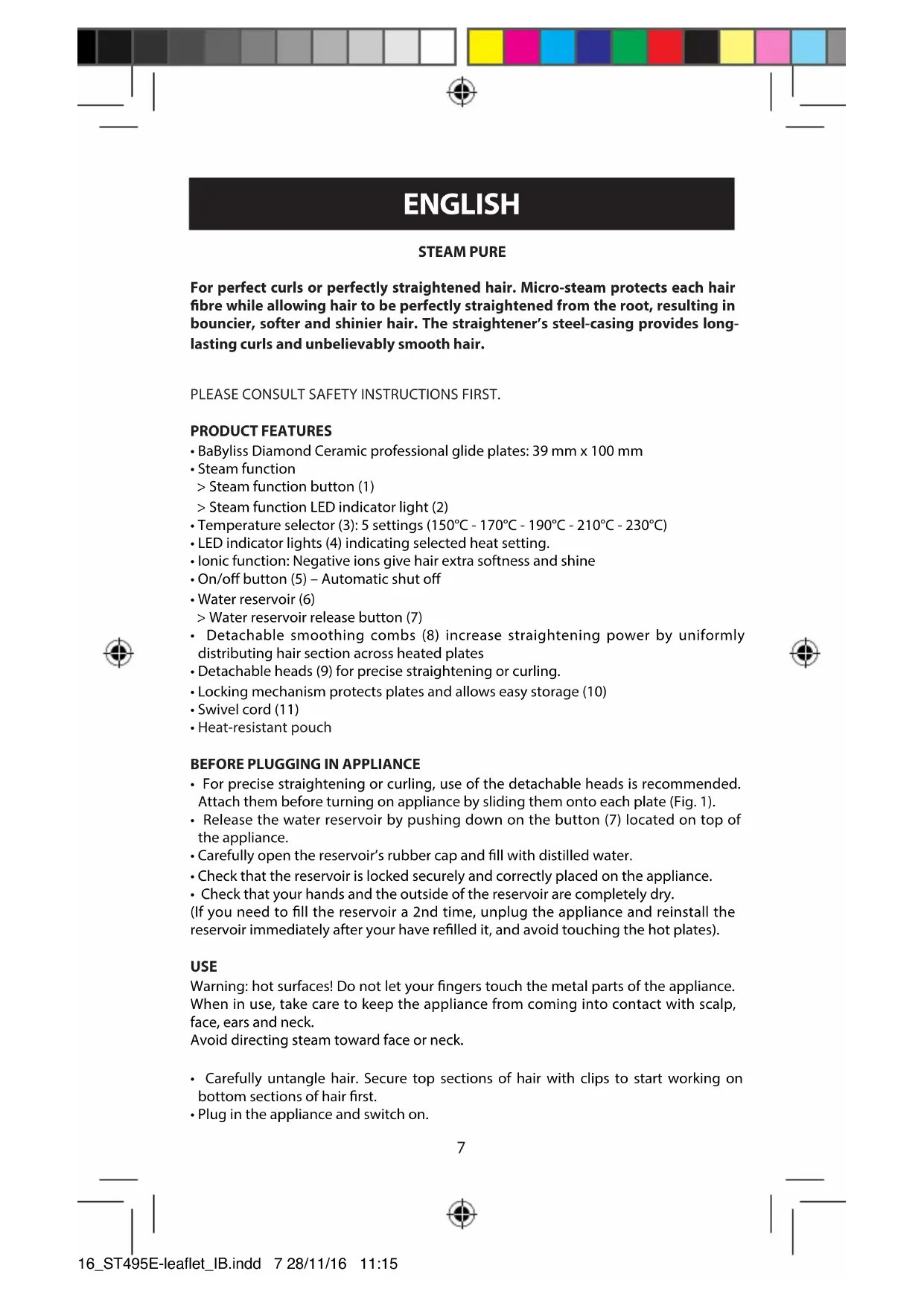 Download the instructions for your Hair Straightener in PDF format for free! Find your manual Steam Pure ST495E - BABYLISS and take your electronic device back in hand. On this page are published all the documents necessary for the use of your device. Steam Pure ST495E by BABYLISS.