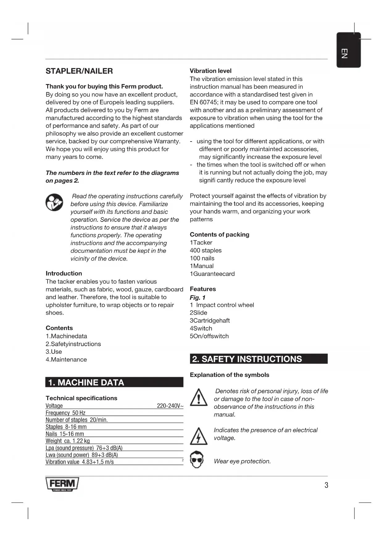 Download the instructions for your Stapler in PDF format for free! Find your manual ETM1004 - Ferm and take your electronic device back in hand. On this page are published all the documents necessary for the use of your device. ETM1004 by Ferm.