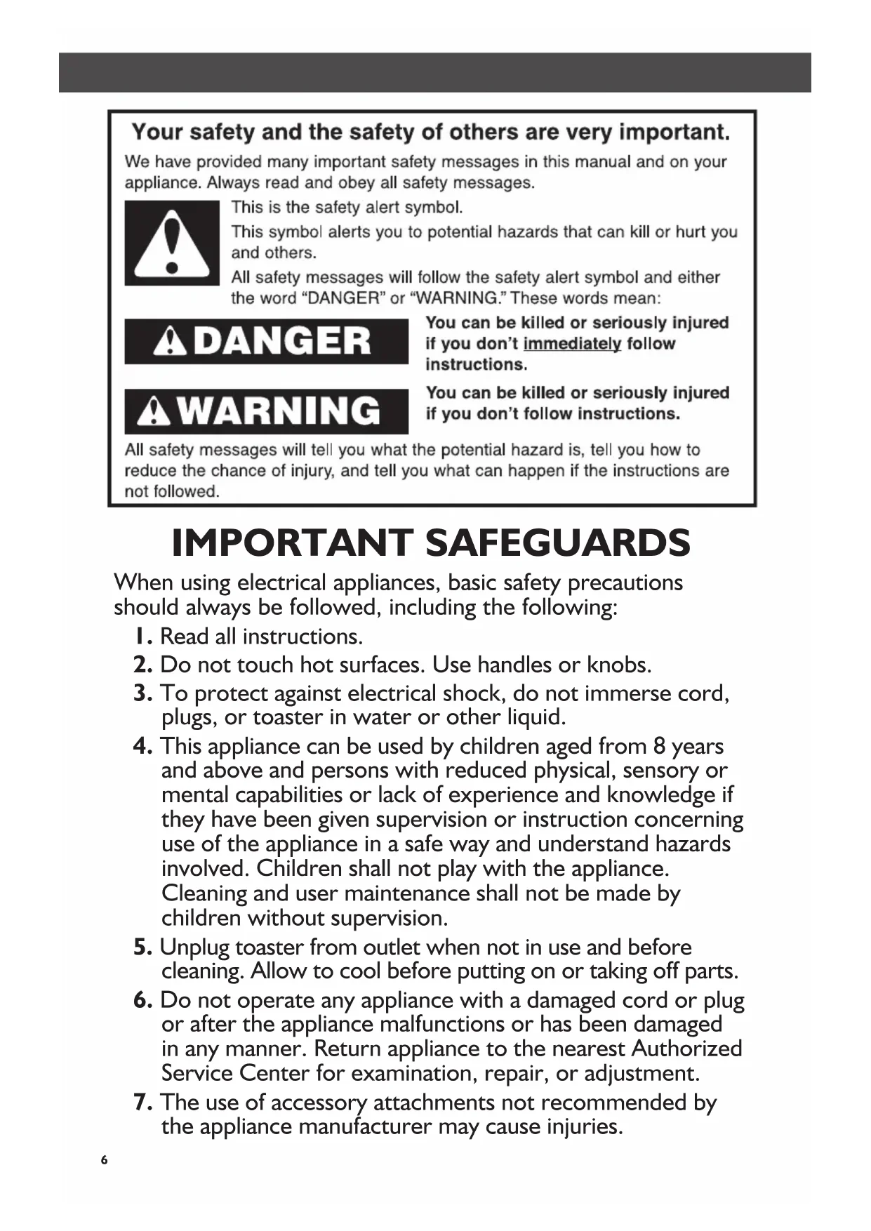 6. Do not operate any appliance with a damaged cord or plug