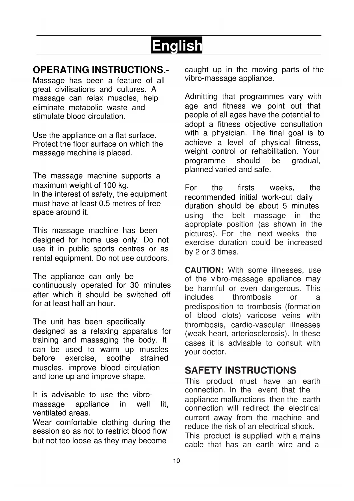 CAUTION: With some illnesses, use of the vibro-massage appliance may be harmful or even dangerous. This includes thrombosis or a predisposition to thrombosis (formation of blood clots) varicose veins with thrombosis, cardio-vascular illnesses (weak heart, arteriosclerosis). In these cases it is advisable to consult with your doctor.
