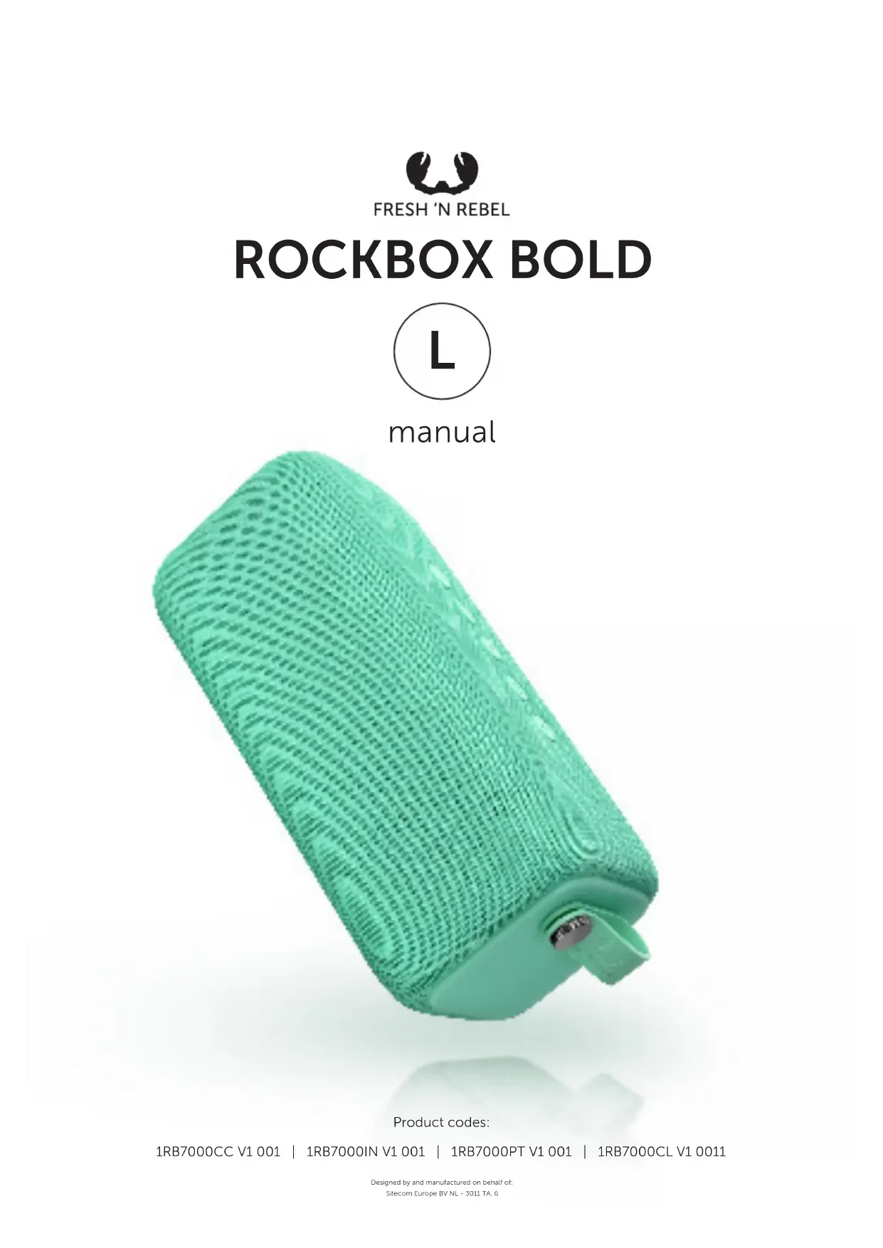 Download the instructions for your Speaker in PDF format for free! Find your manual Rockbox Bold L - Fresh 'n Rebel and take your electronic device back in hand. On this page are published all the documents necessary for the use of your device. Rockbox Bold L by Fresh 'n Rebel.