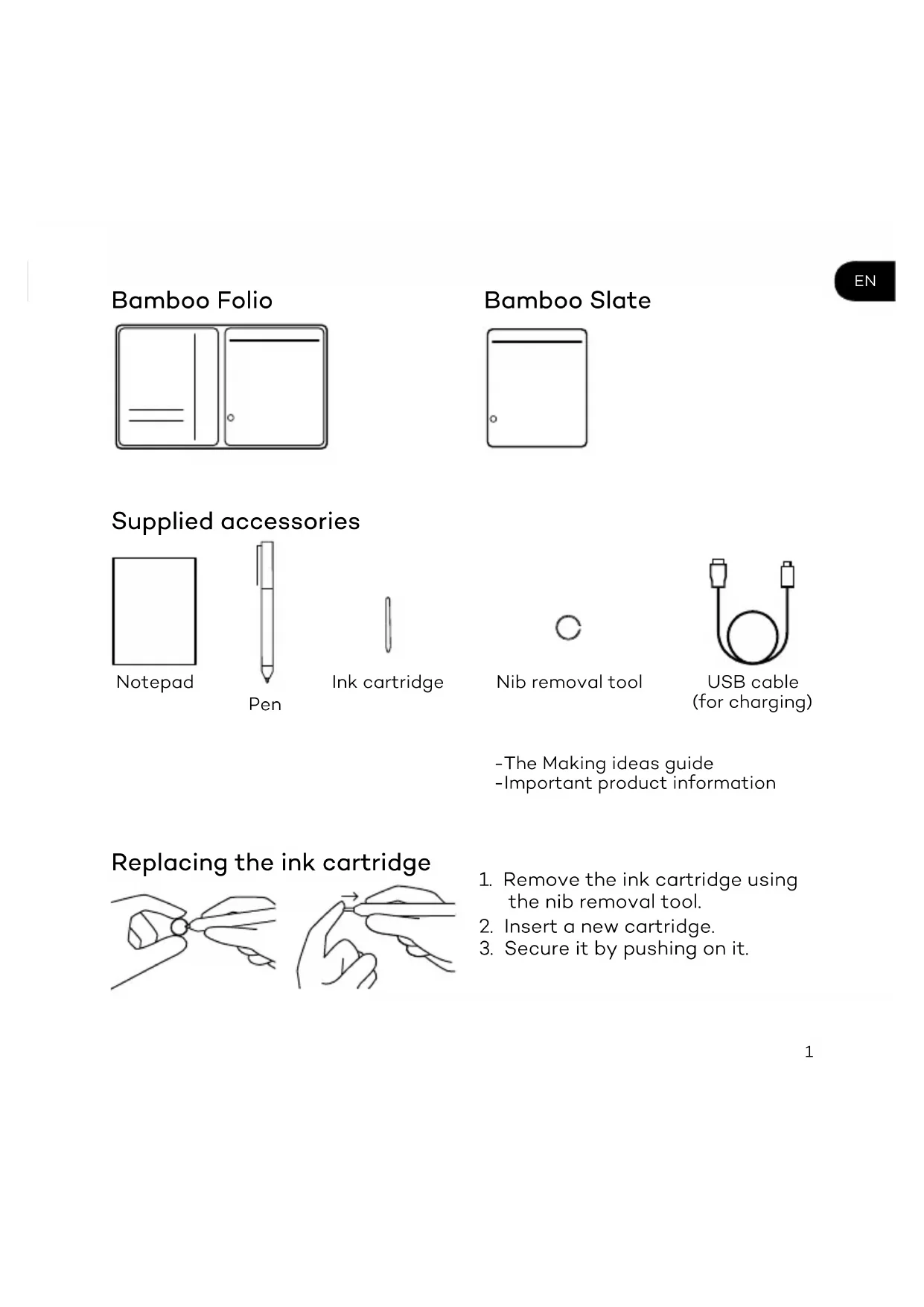 How to get started with your Bamboo Folio or Bamboo Slate To fully use your Bamboo Folio or Bamboo Slate, you need to install the Wacom Inkspace app. It moves your handwritten ideas from paper to your mobile device, and allows basic digital editing. It also gives you access to Inkspace services, so you can store your notes in the cloud, sync them with other devices, share them with other people and much more. Have ideas Capture ideas Shape and share ideas Inkspace3
