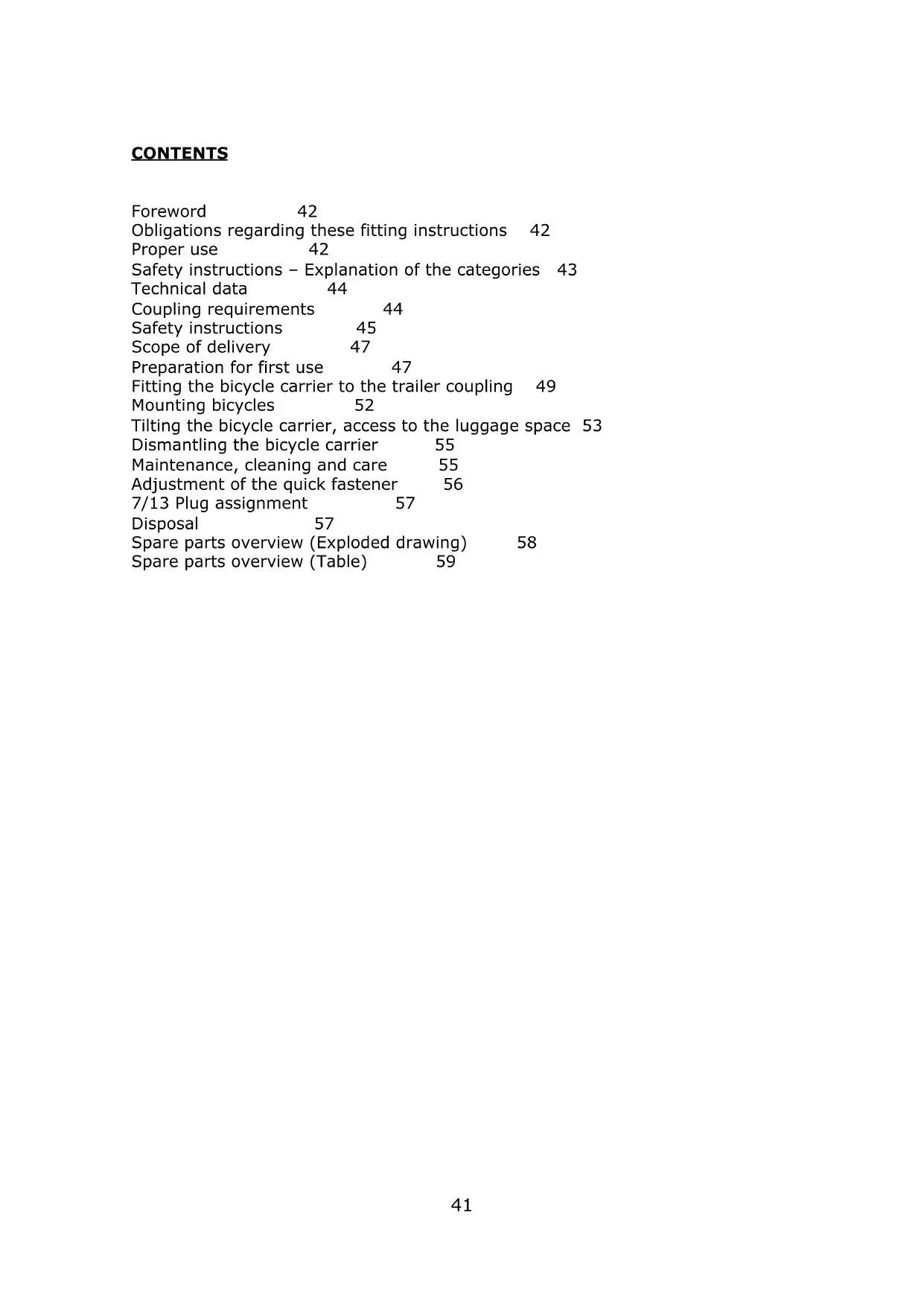 Under normal conditions and use, the bicycle carrier only requires cleaning, and is otherwise maintenance free.