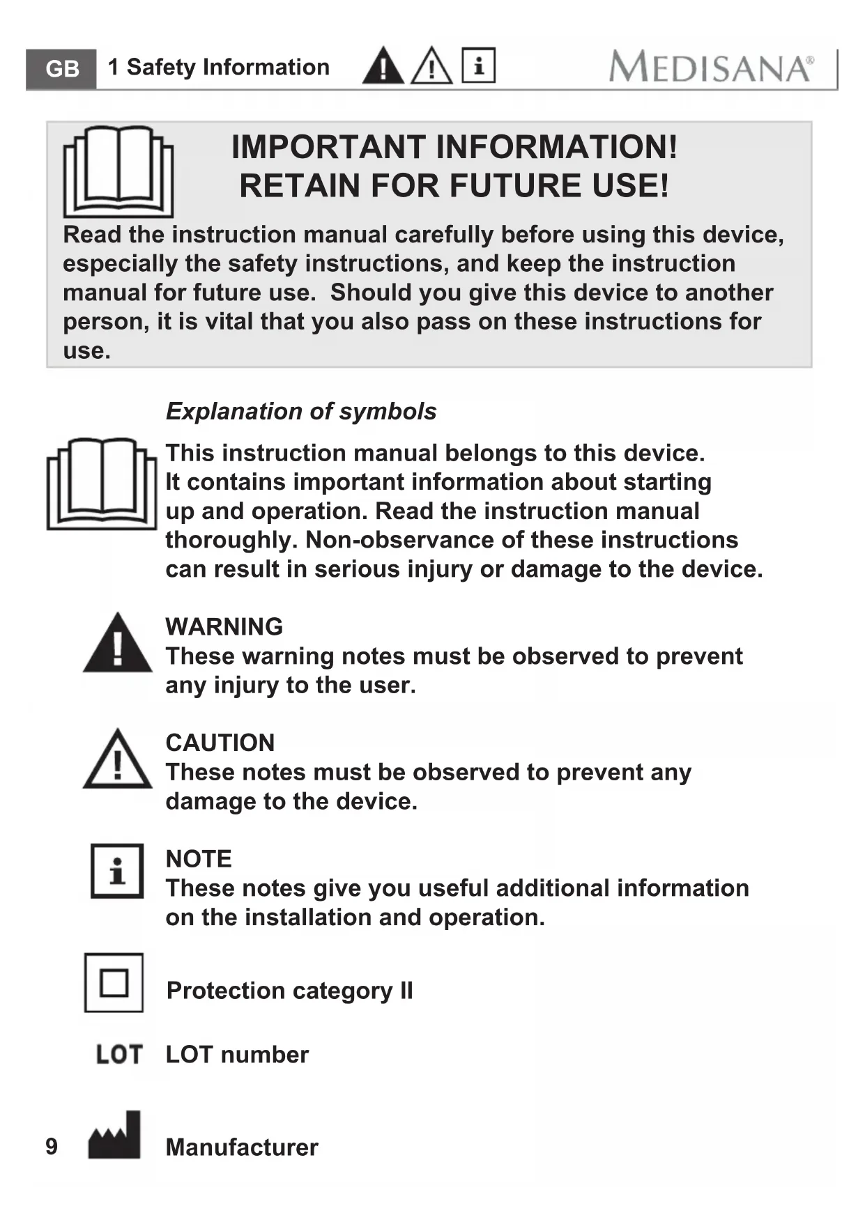 The current version of this instruction manual can be found under www.medisana.com