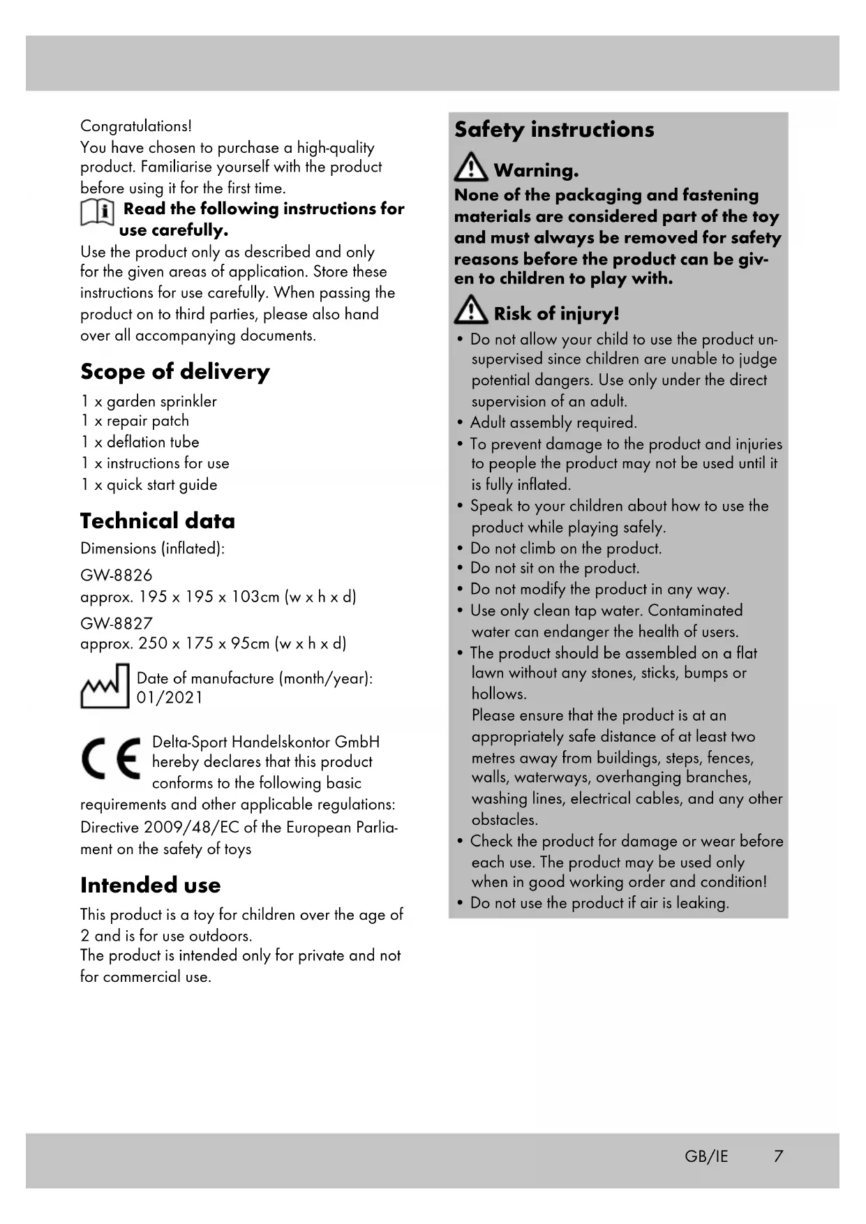 IAN 361427 - Inflatable water sprinkler Playtive - Free user manual and instructions
