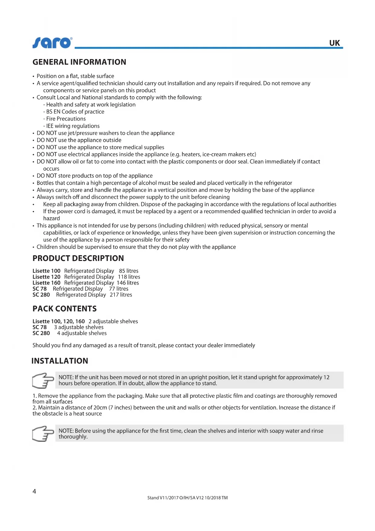 Download the instructions for your Fridge in PDF format for free! Find your manual LISETTE 120 - Saro and take your electronic device back in hand. On this page are published all the documents necessary for the use of your device. LISETTE 120 by Saro.