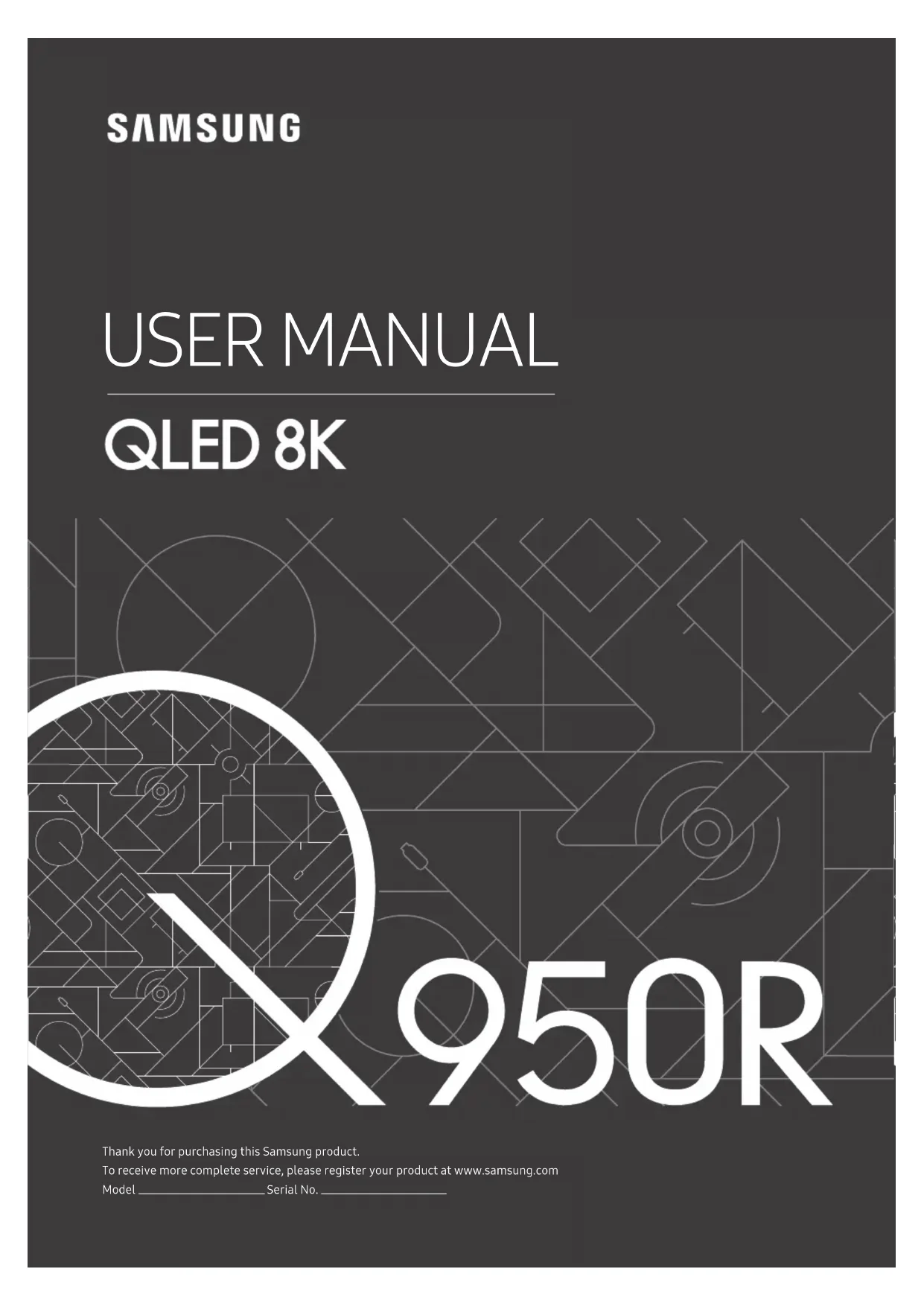 USER MANUAL Thank you for purchasing this Samsung product. To receive more complete service, please register your product at www.samsung.com Model Serial No.Before Reading This User Manual This TV comes with this user manual and an embedded e-Manual. Before reading this user manual, review the following: User Manual Read this provided user manual to see information about product safety, installation, accessories, initial configuration, and product specifications. e-Manual For more information about this TV, read the e-Manual embedded in the product.
