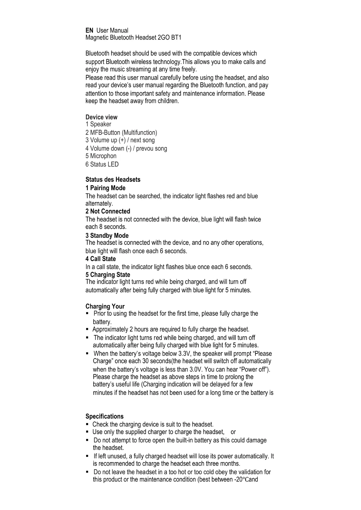 Find the device manual for free Active BT1 2GO in PDF.