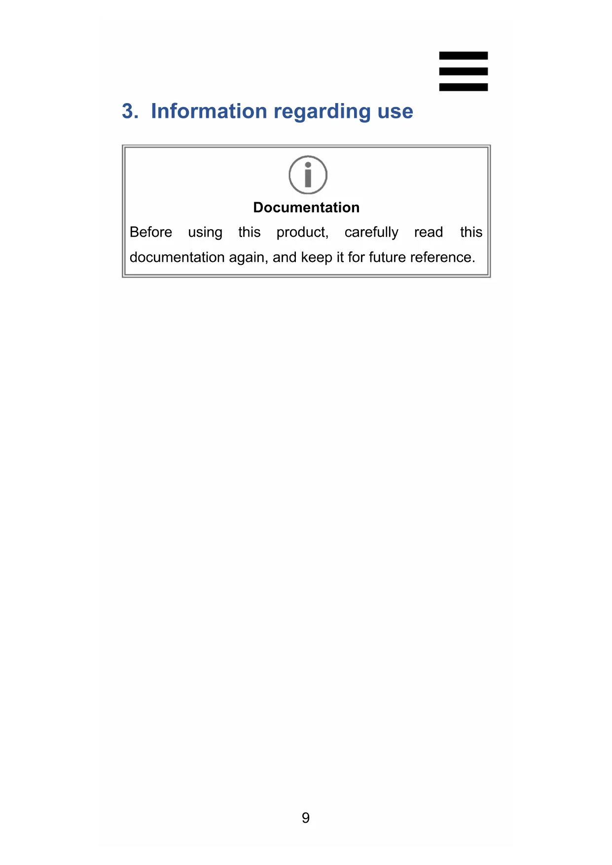 Documentation Before using this product, carefully read this documentation again, and keep it for future reference.10