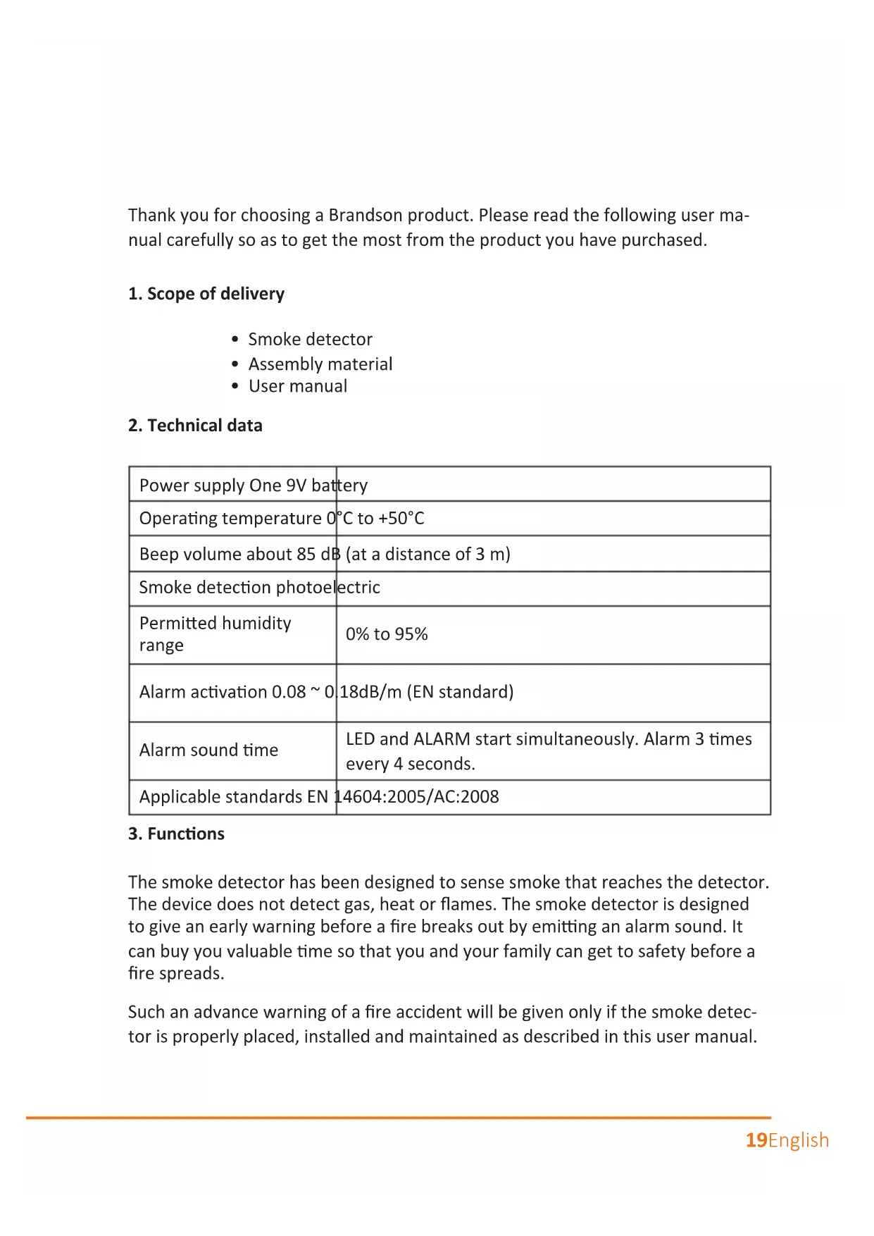 304967 - Smoke detector Brandson - Free user manual and instructions
