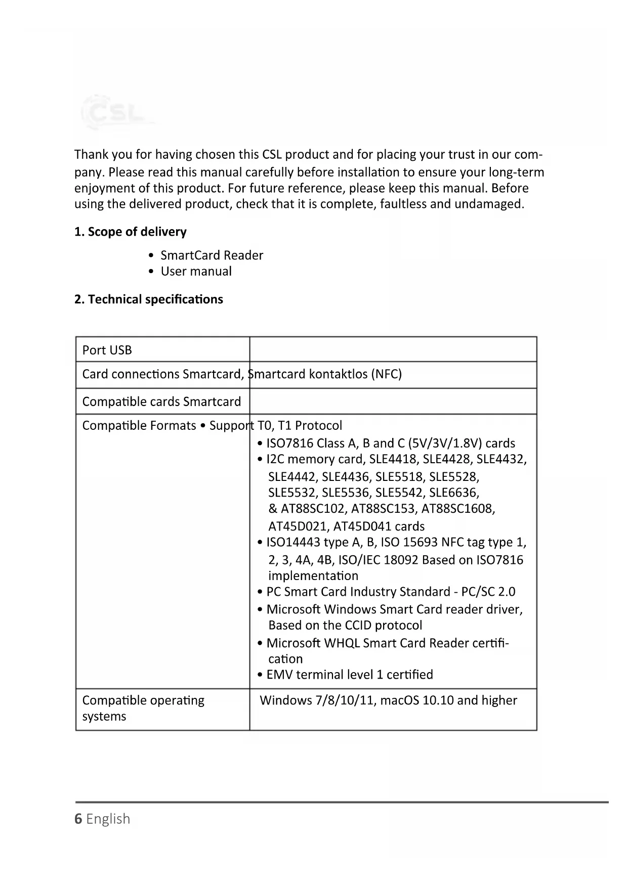 Download the instructions for your Card reader in PDF format for free! Find your manual 306901 - CSL and take your electronic device back in hand. On this page are published all the documents necessary for the use of your device. 306901 by CSL.