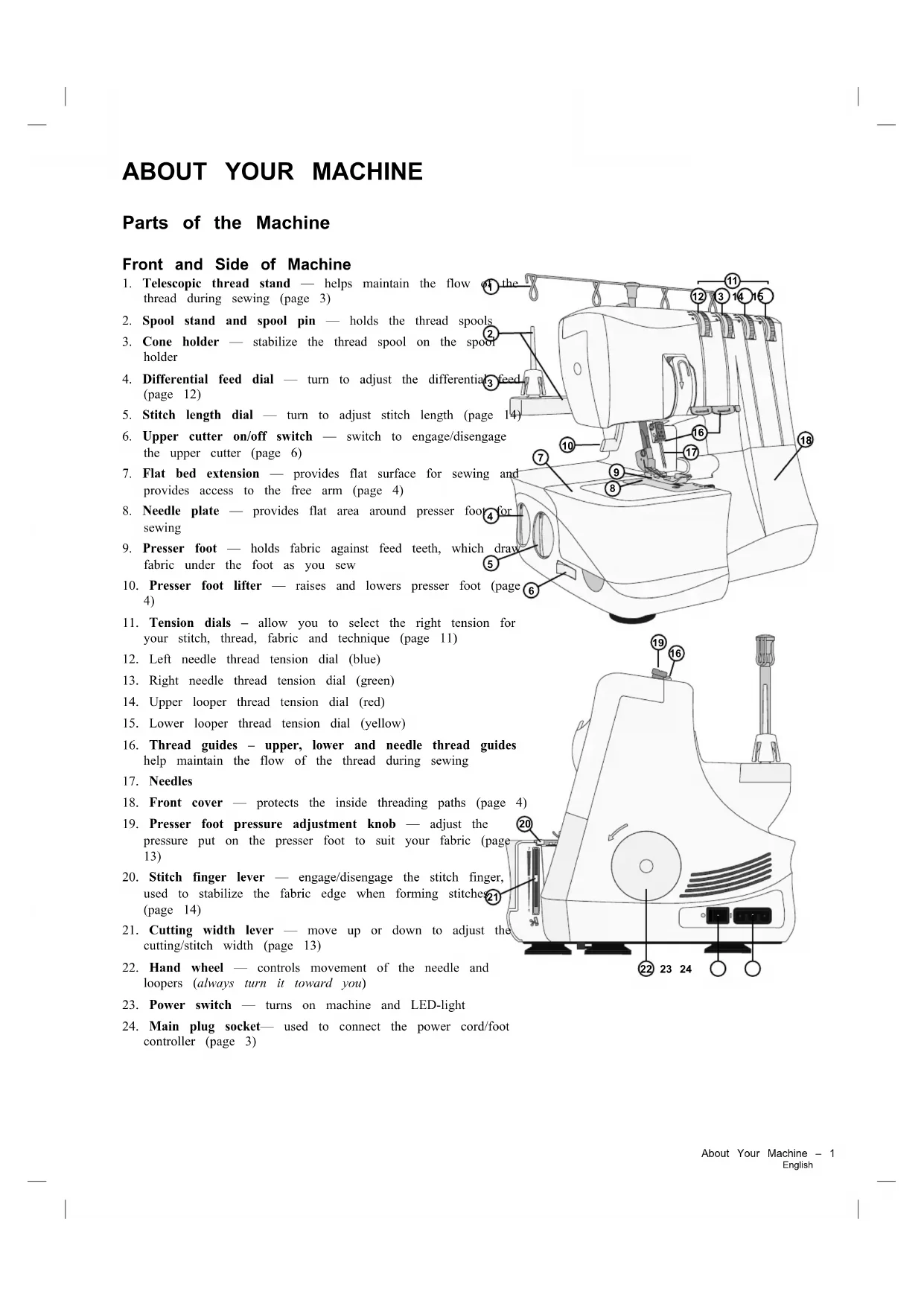 18. Front cover — protects the inside threading paths (page 4)