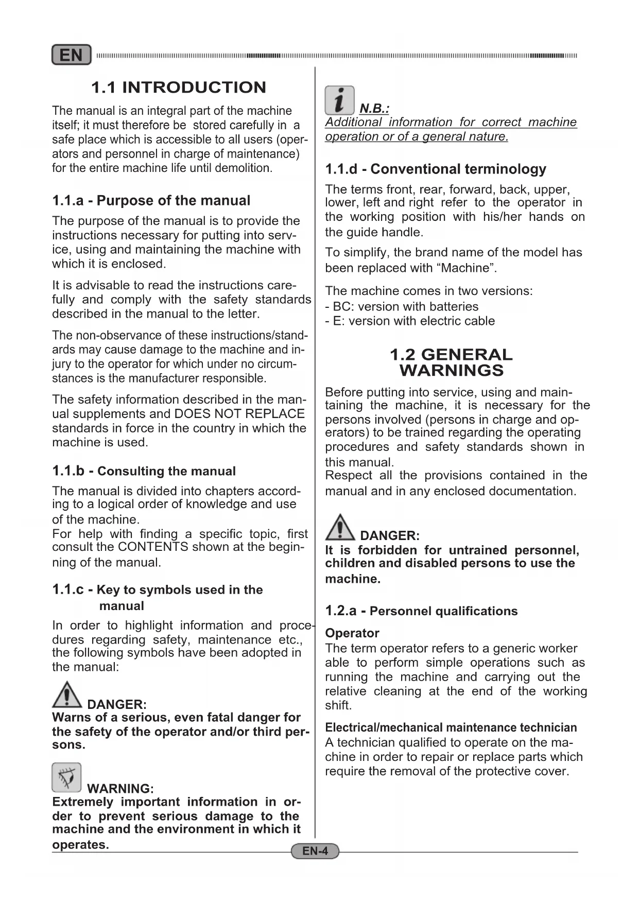1.1.c Key to symbols used in the manual.....EN-4