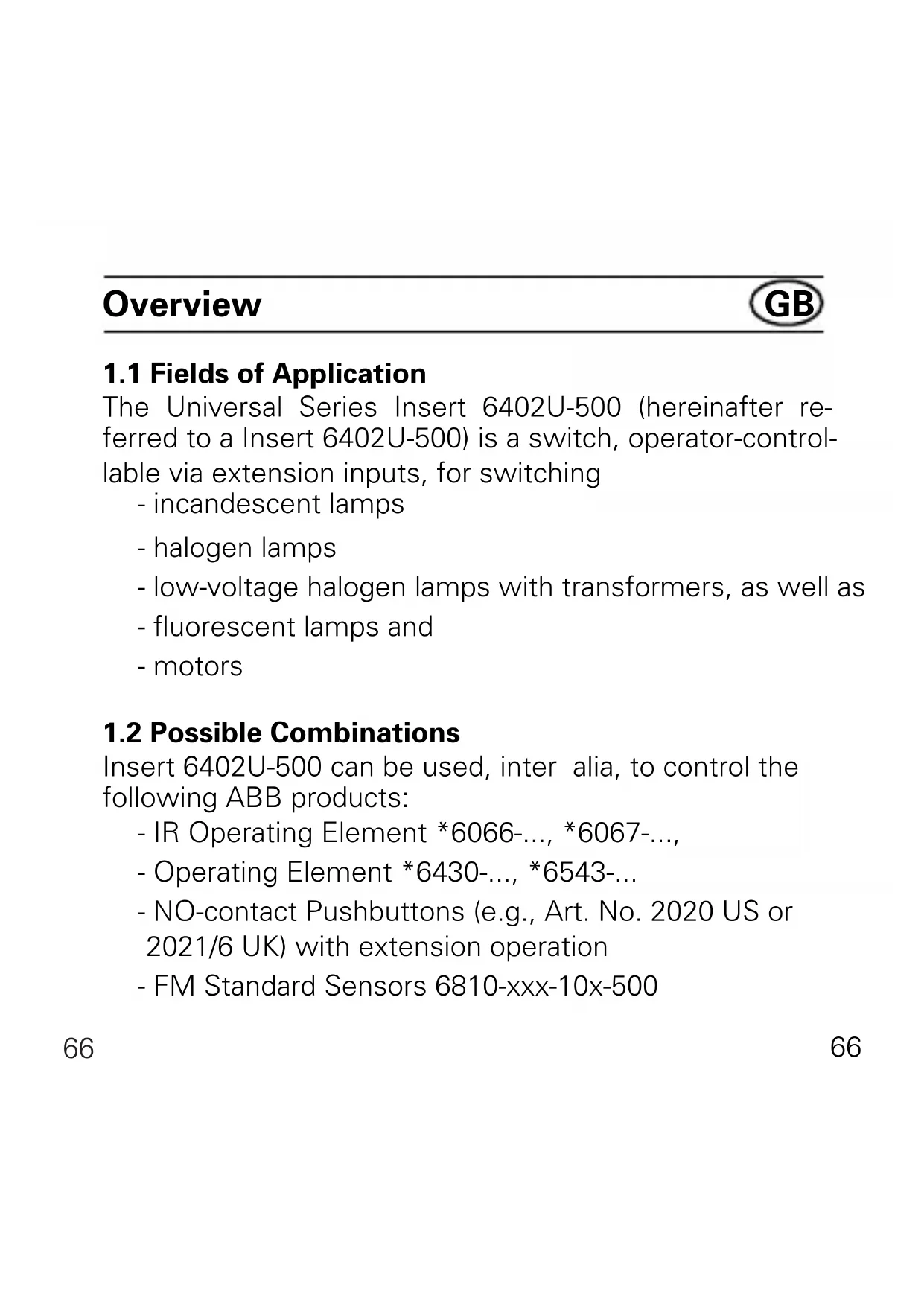Insert 6402U-500 can be used, inter alia, to control the following ABB products: