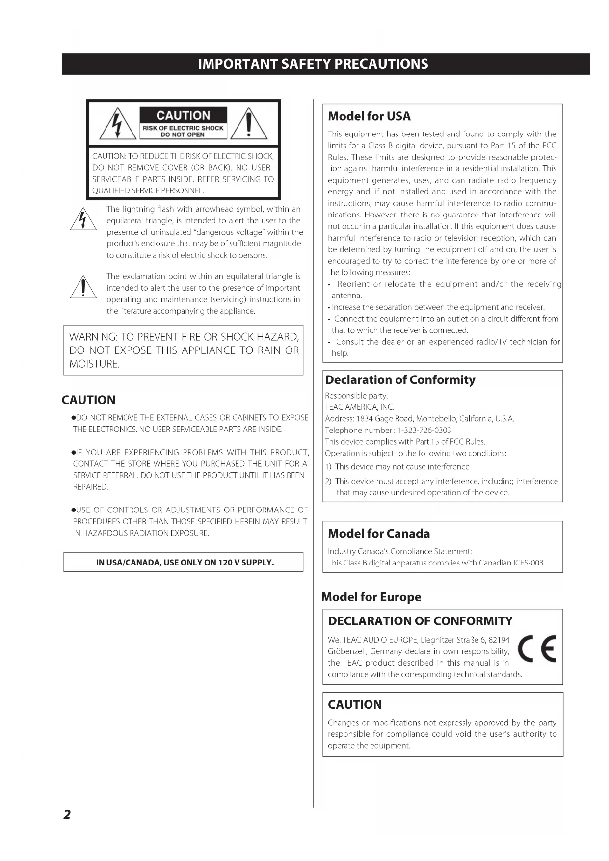 TEAC AUDIO EUROPE Liegmitzer StraBe 6,82194 Grobenzell, Germany Phone: +49-8142-4208-141