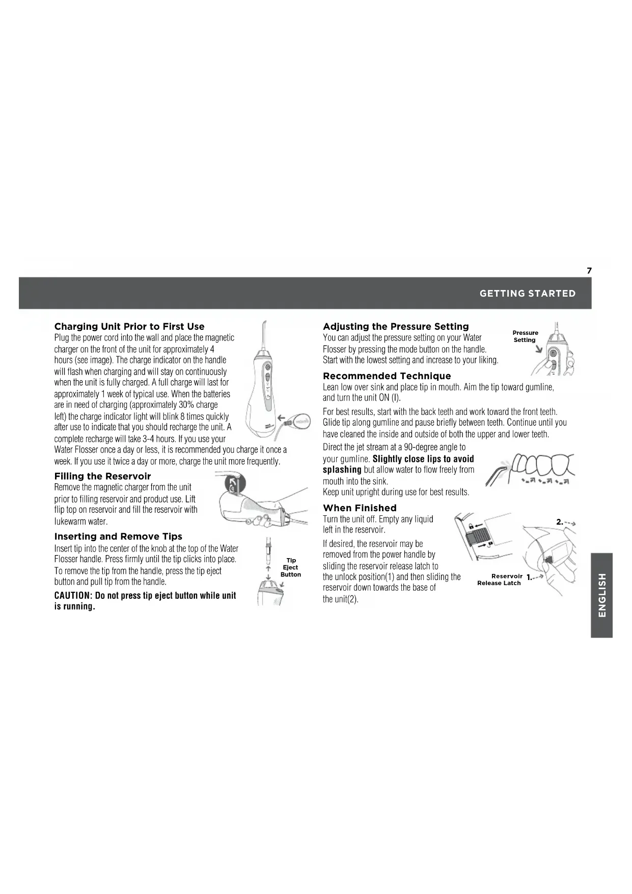 Water Flosser once a day or less, it is recommended you charge it once a week. If you use it twice a day or more, charge the unit more frequently.