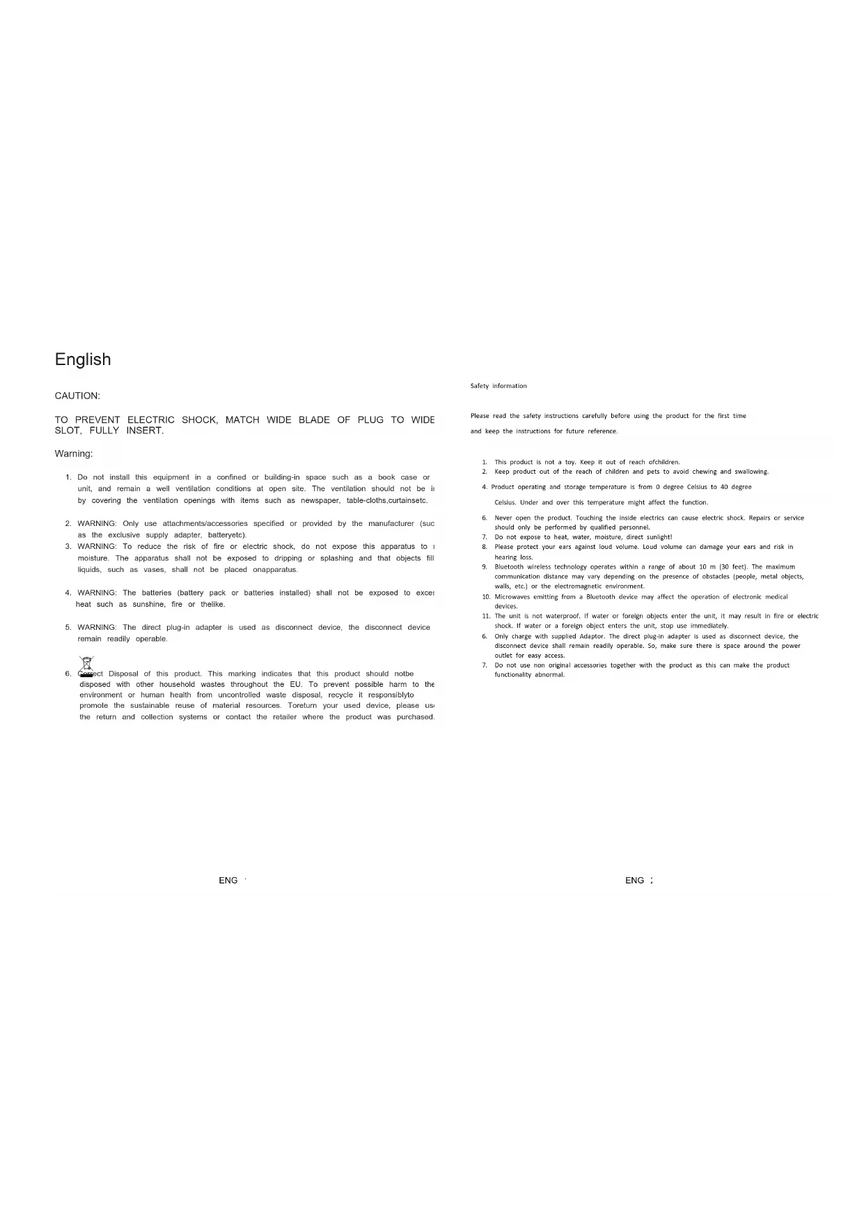 disposed with other household wastes throughout the EU. To prevent possible harm to the environment or human health from uncontrolled waste disposal, recycle it responsiblyto promote the sustainable reuse of material resources. Toreturn your used device, please use the return and collection systems or contact the retailer where the product was purchased. Safety information Please read the safety instructions carefully before using the product for the first time and keep the instructions for future reference.